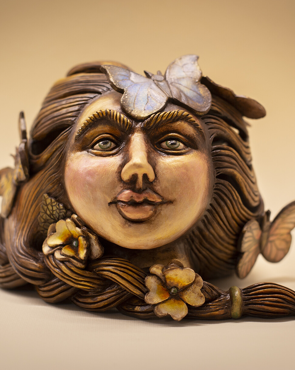 Spaziamo dall’arte all’artigianato, ci esprimiamo attraverso materiali quali legno, ceramica, vetro, cartapesta, tessuti; i soggetti che prediligiamo sono bambole, creature oniriche, bagnanti e contadinelle marchigiane, realizzate seguendo un nostro originale stile personale.