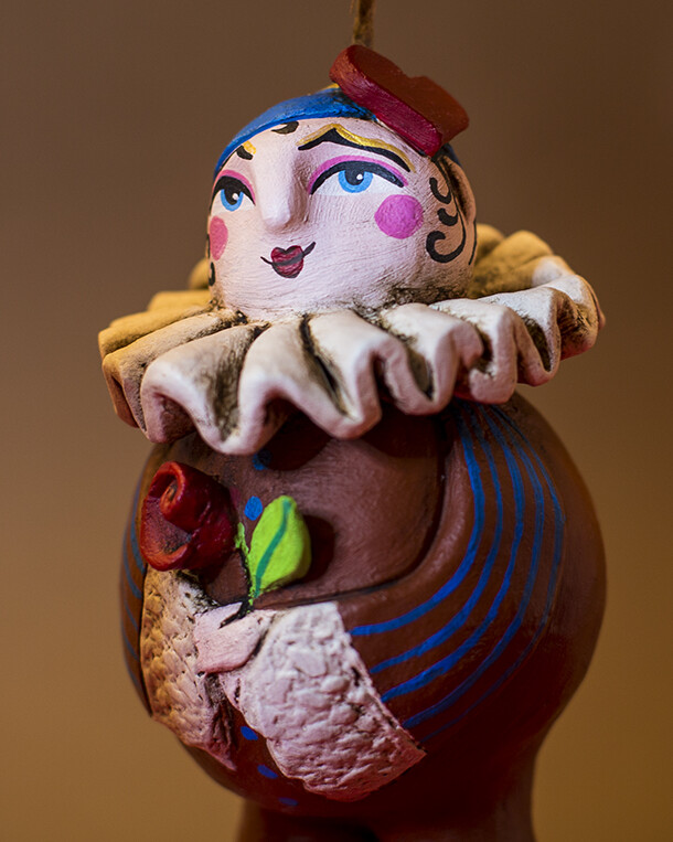 Spaziamo dall’arte all’artigianato, ci esprimiamo attraverso materiali quali legno, ceramica, vetro, cartapesta, tessuti; i soggetti che prediligiamo sono bambole, creature oniriche, bagnanti e contadinelle marchigiane, realizzate seguendo un nostro originale stile personale.