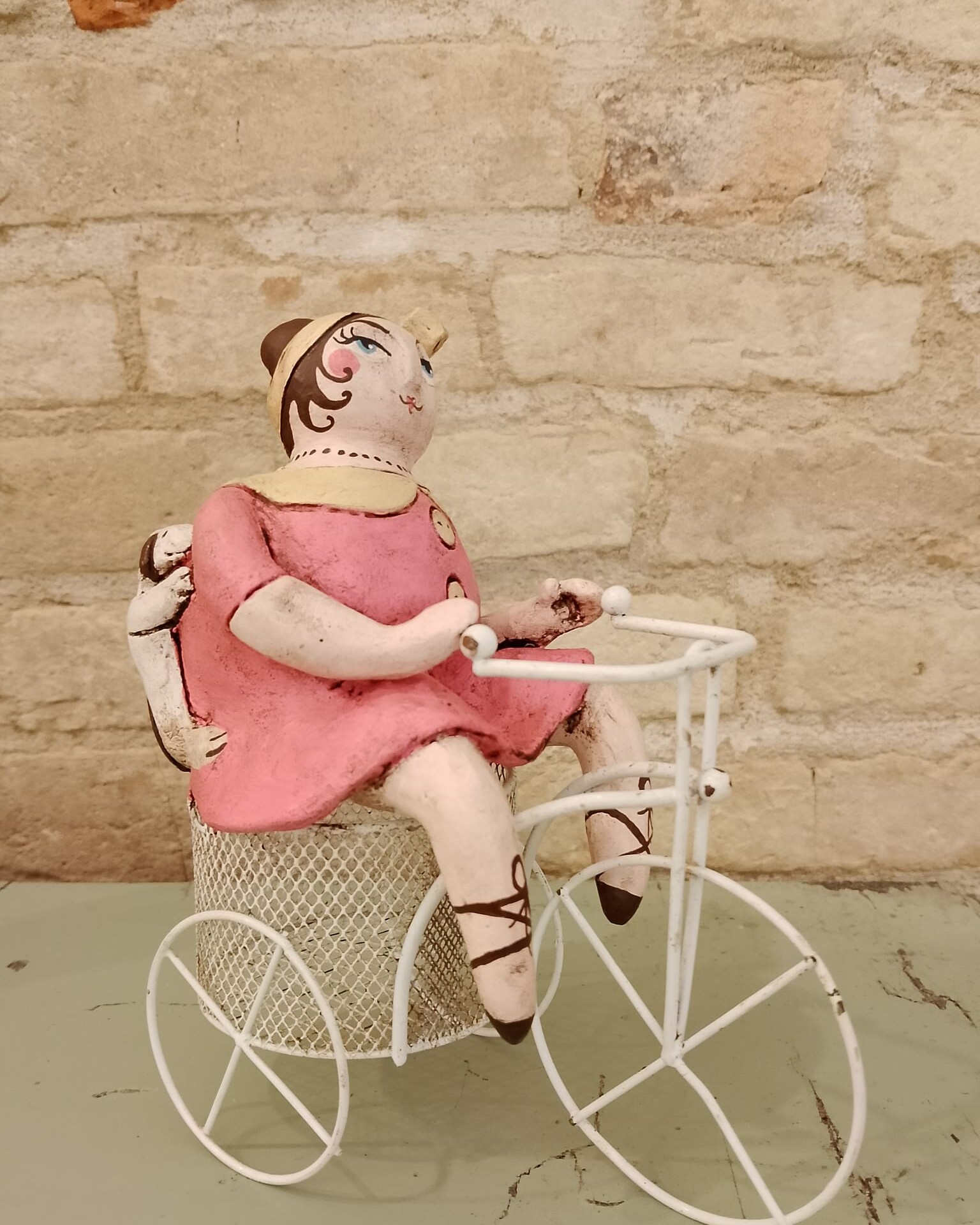 Spaziamo dall’arte all’artigianato, ci esprimiamo attraverso materiali quali legno, ceramica, vetro, cartapesta, tessuti; i soggetti che prediligiamo sono bambole, creature oniriche, bagnanti e contadinelle marchigiane, realizzate seguendo un nostro originale stile personale.