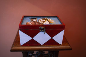 Quadri e scatole si presentano come delle vere e proprie illustrazioni. Su di essi vengono raccontati storie, come ad esempio quella di un cavaliere che salva la sua amata, oppure di allegre fanciulle che danzano in un girotondo.