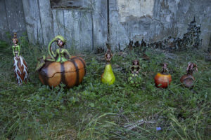 Rispettandone la loro forma e dimensioni originali, questi diventano però il pretensto per trasformarli in gonne di donne surreali. All’interno ognuna di esse è vuota e tagliata in due con un sapiente gioco di incastri. In questo modo diventano dei veri e propri contenitori.