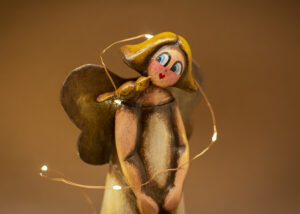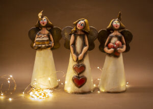 A completare la collezione, gli angeli da appendere dagli occhioni rivolti ogni volta in una direzione diversa e dalle acconciature più disparate. Anche loro come i fratelli maggiori, sono caratterizzati dalle grandi ali a forma di farfalla.