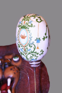 Tempo fa era successo per Anna quando ORESTE, il re delle foreste, aveva varcato la soglia dell’Orientexpress andandosene ad abitare nella sua nuova casa. Oreste è un leone in terracotta dipinta a freddo. Se ne sta accucciato sornione, sopra un piedistallo ed intanto tiene con una zampa un palloncino, anch’esso in terracotta, con dipinti in stile roccocò, disegni che rimandano alla sua regalità.