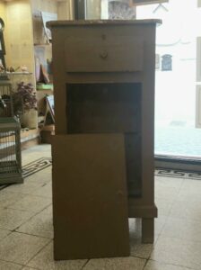 Questo comodino disponibile nello shop del nostro sito nella sezione brocante, vuole essere un esempio che vi diamo per sbizzarrire la vostra fantasia. Se possedete anche voi un vecchio complemento d’arredo, un tavolo, una sedia, un cassetto.. venite a farcelo vedere e chissà, magari raccontandoci delle vostre passioni, anche questi poveri relitti potrebbero stupirvi ancora.