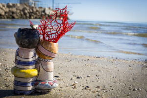 Deliziosi ricordi della nostra spiaggia, eleganti e simpatici per far crescere al loro interno una piantina grassa, o per contenere matite, mestoli, tutto quello che la fantasia vi suggerisce.