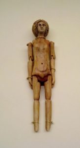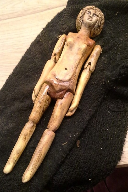 Accanto allo scheletro di Cossinia, di cui purtroppo si è persa ogni traccia, fu rinvenuta una preziosa bambolina d’avorio, che in vita le dovette essere molto cara, simbolo della sua infanzia e di quella verginità che conservò per tutta la sua lunga esistenza. Le fanciulle romane, infatti, potevano giocare con le loro bambole solo fino alla vigilia del matrimonio, quando offrivano i propri giocattoli alla divinità, nel corso di una cerimonia che segnava il loro ingresso nei ruoli di sposa e madre. Cossinia, però, non andò mai sposa e tenne sempre con sé la sua splendida “pupa”.
