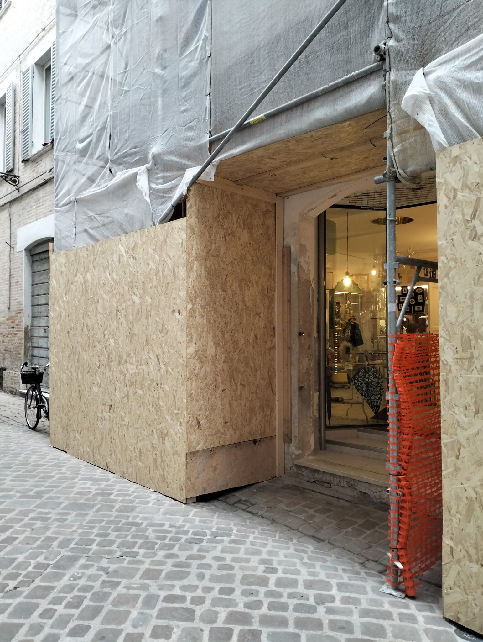 Quando ci hanno detto che avrebbero montato l’impalcatura sulla facciata del nostro palazzo, ci siamo sentiti persi. Non è un mistero che essere ingabbiati da un cantiere non è di cero una cosa piacevole. Intanto si è costretti a vivere per lungo tempo tra la polvere e il rumore, nell’assenza di luce solare e nello specifico di un’attività commerciale, nella quasi totale cancellazione dalla visibilità pubblica.