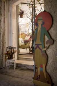 Immancabile la silhouette in legno dipinto che da tantissimi anni ci da il ben venuto in bottega.