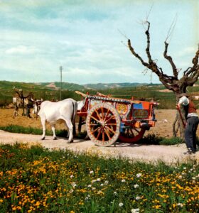 Il carro serviva per portare l’uva nelle cantine del padrone, o il grano. I birocci in festa si adoperavano anche per le sfilate di carnevale.
