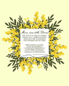 Ogni donna è stata una bambina e di sicuro avrà giocato con una bambola. Almeno per quanto ne sappiamo, è questo il giocattolo per antonomasia delle giovani fanciulle. Quindi per tutti i 31 giorni che lo compongono, se avete una vecchia bambola da sistemare, un cimelio di famiglia, un caro ricordo d’infanzia, portatecelo in negozio! Valuteremo di che tipo di restauro ha bisogno e soprattutto, se necessario, cambieremo i suoi elastici interni gratuitamente. Molte di queste creature purtroppo così come succede agli abiti di tutti noi, subisce l’allentamento degli elastici, causandone il totale rilassamento degli arti e la testa. Per questa “operazione ortopedica” solitamente chiediamo 15€, ma siccome siamo in vena di far festa, a marzo tutto questo sarà a costo zero.