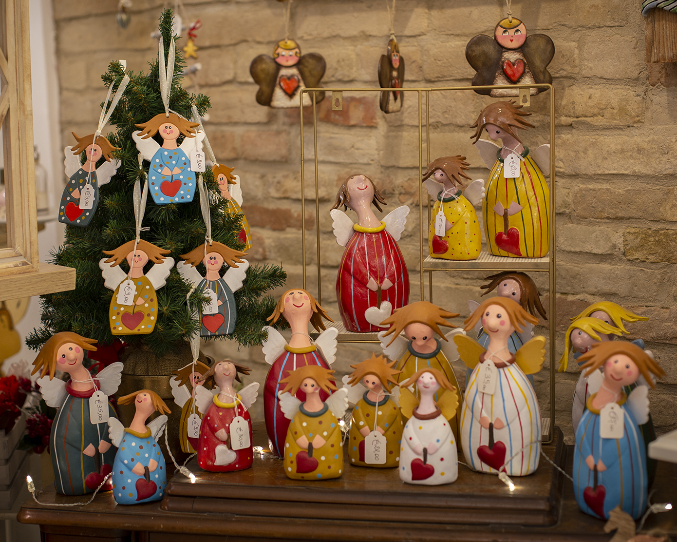A completare la collezione, sagome di angeli in terracotta da appendere all’albero, ma perchè no, anche ad un mobile o ad un lampadario.