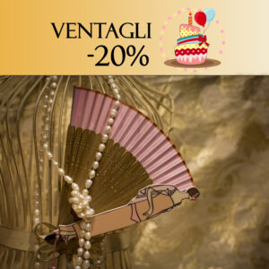 Poi ancora gli ombrelli con preziose impugnature in legno scolpito e dipinto, cornici, per arrivare agli ormai iconici ventagli che sono diventati uno dei simboli del laboratorio. Accessori questi che troverete con prezzi ribassati dal 20% al 30%.