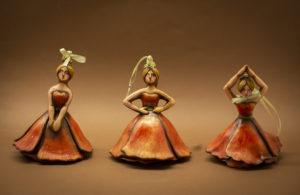 Così Anna racconta l’Estate, tramite questo fiore allegro e spontaneo. In terracotta dipinta a freddo, la collezione è composta da tre bassorilievi incastonati in cornici in legno e tre ballerine fluttuanti che nascondono sotto i petali della gonna, il proprio frutto, la capsula contenente i semi. In realtà queste donne volanti, sono delle campanelle. Ovviamente vista la fragilità del materiale con cui sono fatte, non è proprio consigliabile suonarle, ma sicuramente questa particolarità le rende anche più simpatiche.