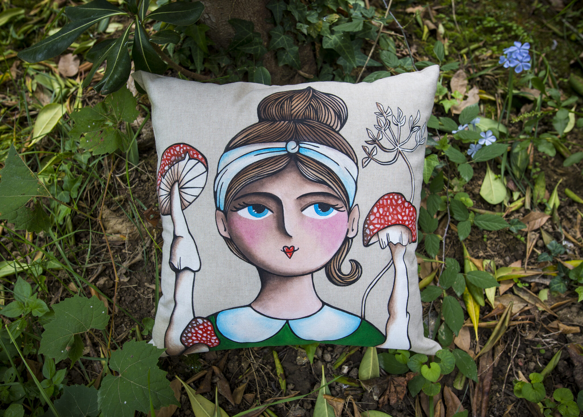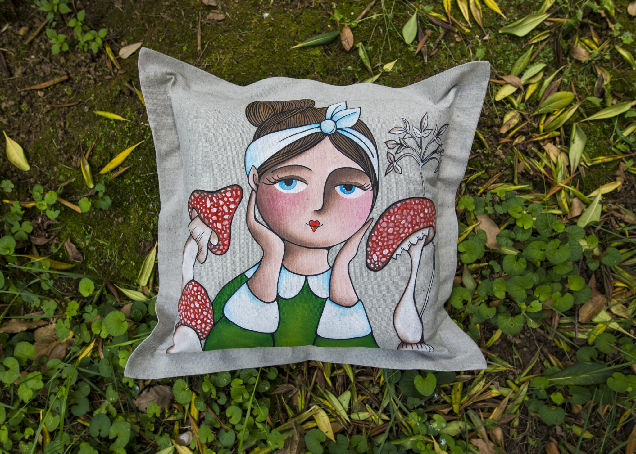 Cuscino con Pupa e funghi 40×40