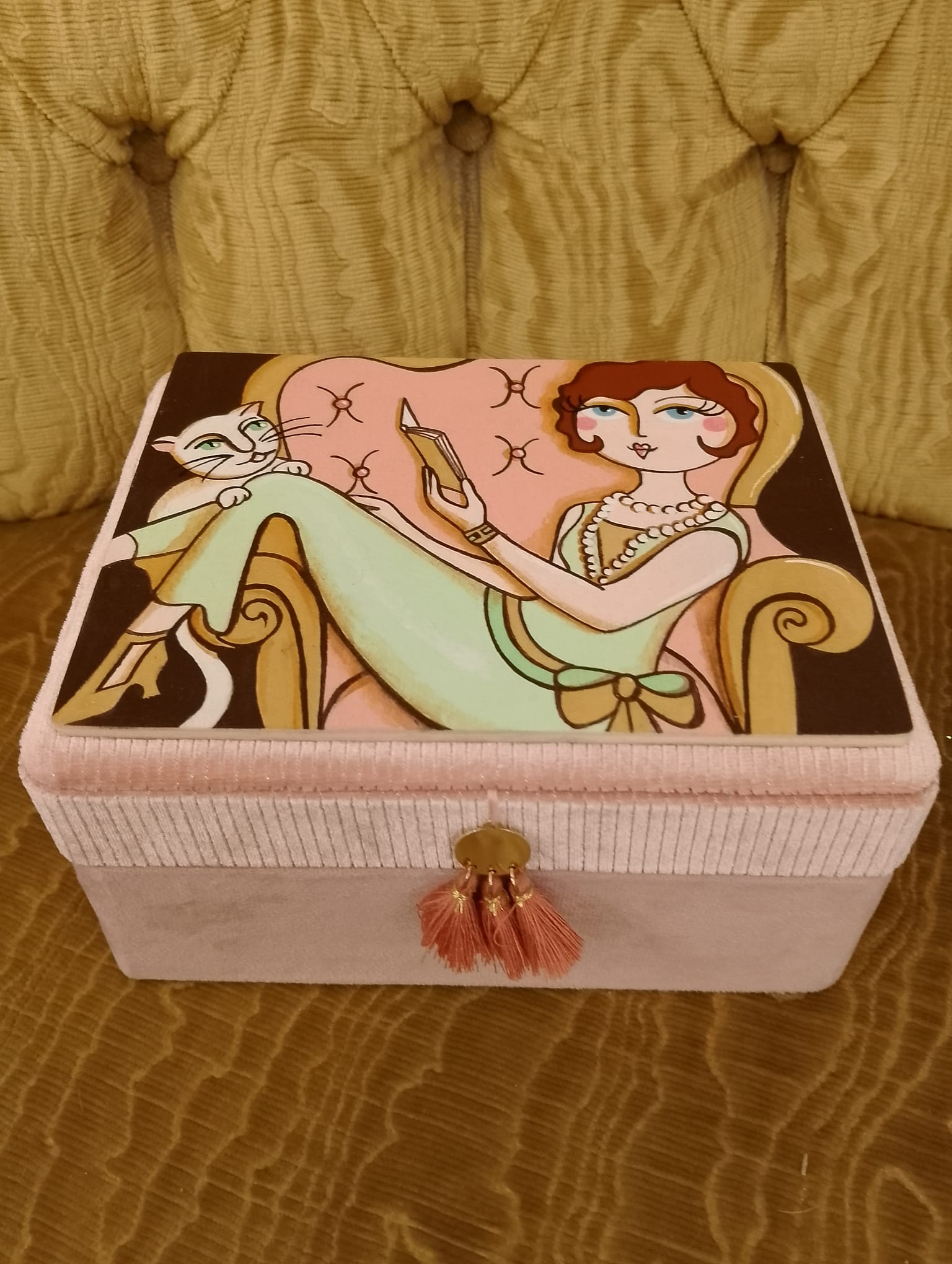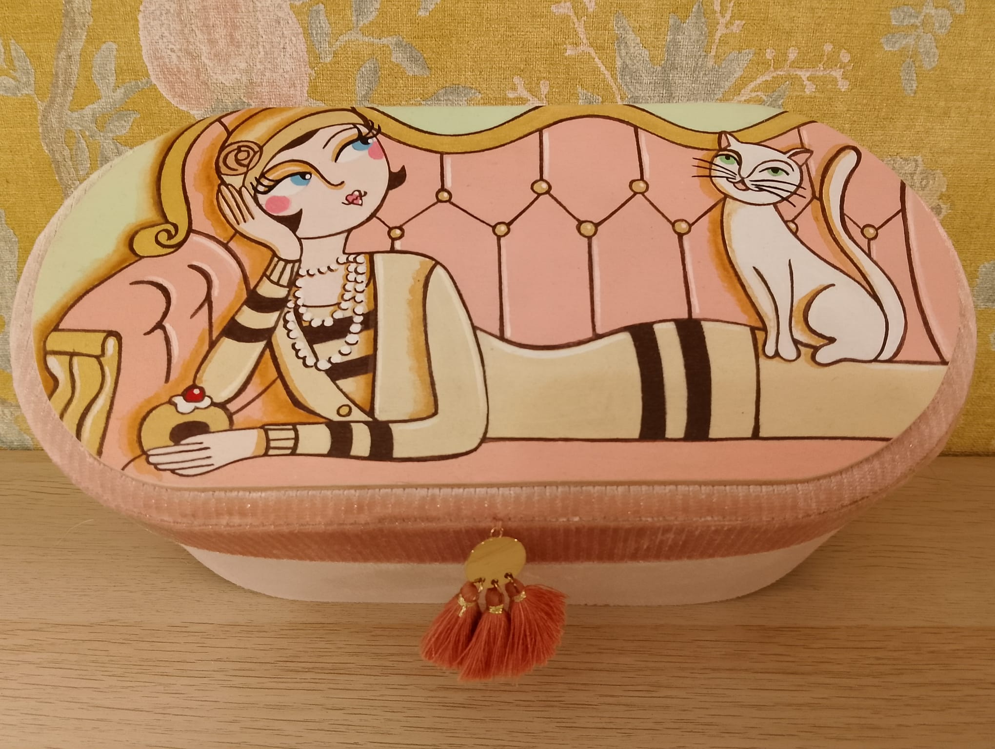 Scatola Portagioie “Flapper Lounge” – Velluto e Coperchio Dipinto a Mano