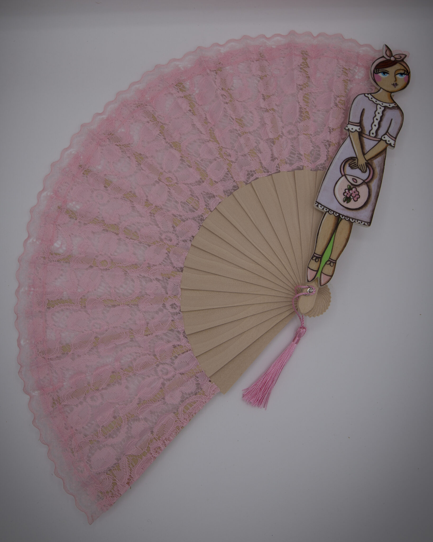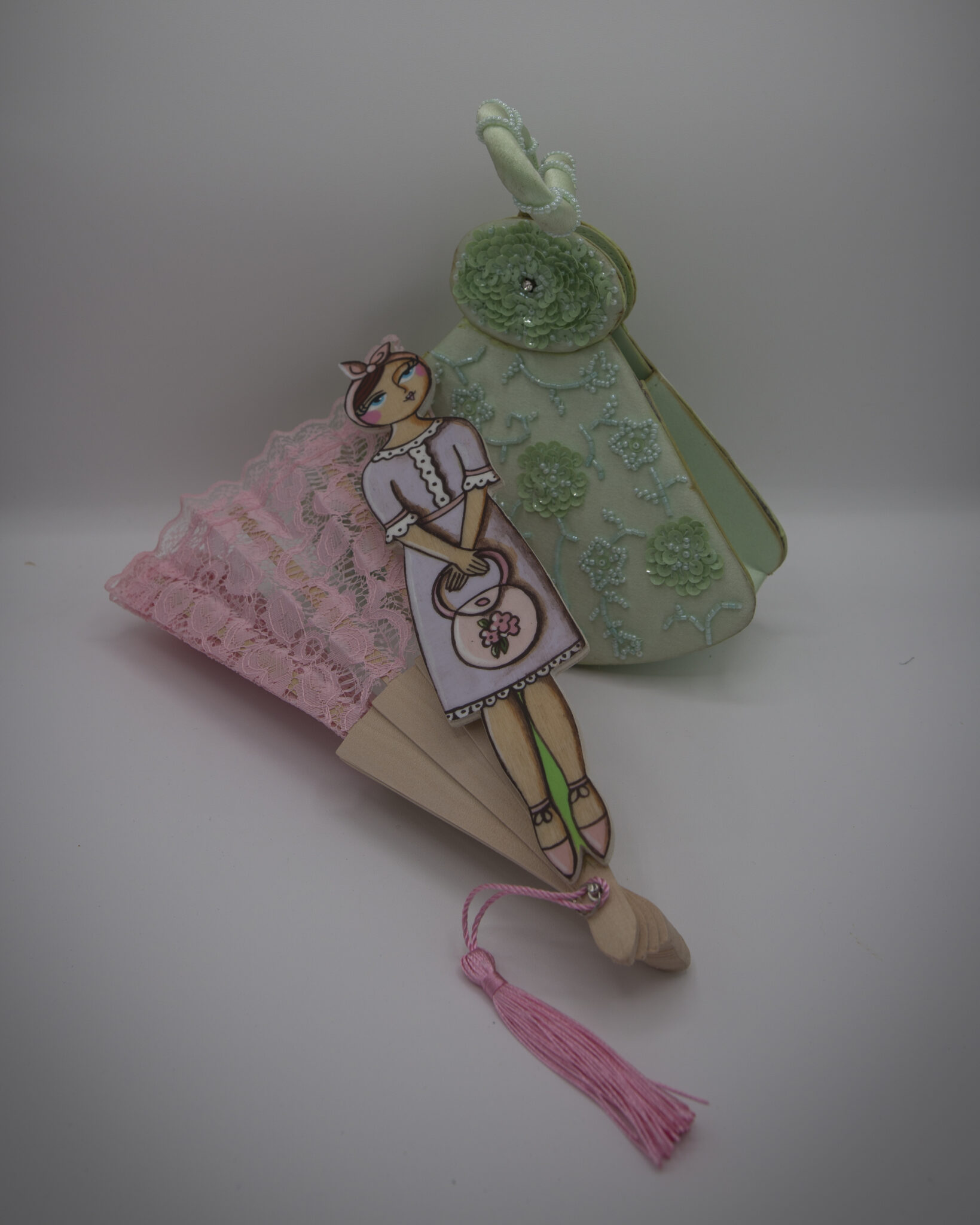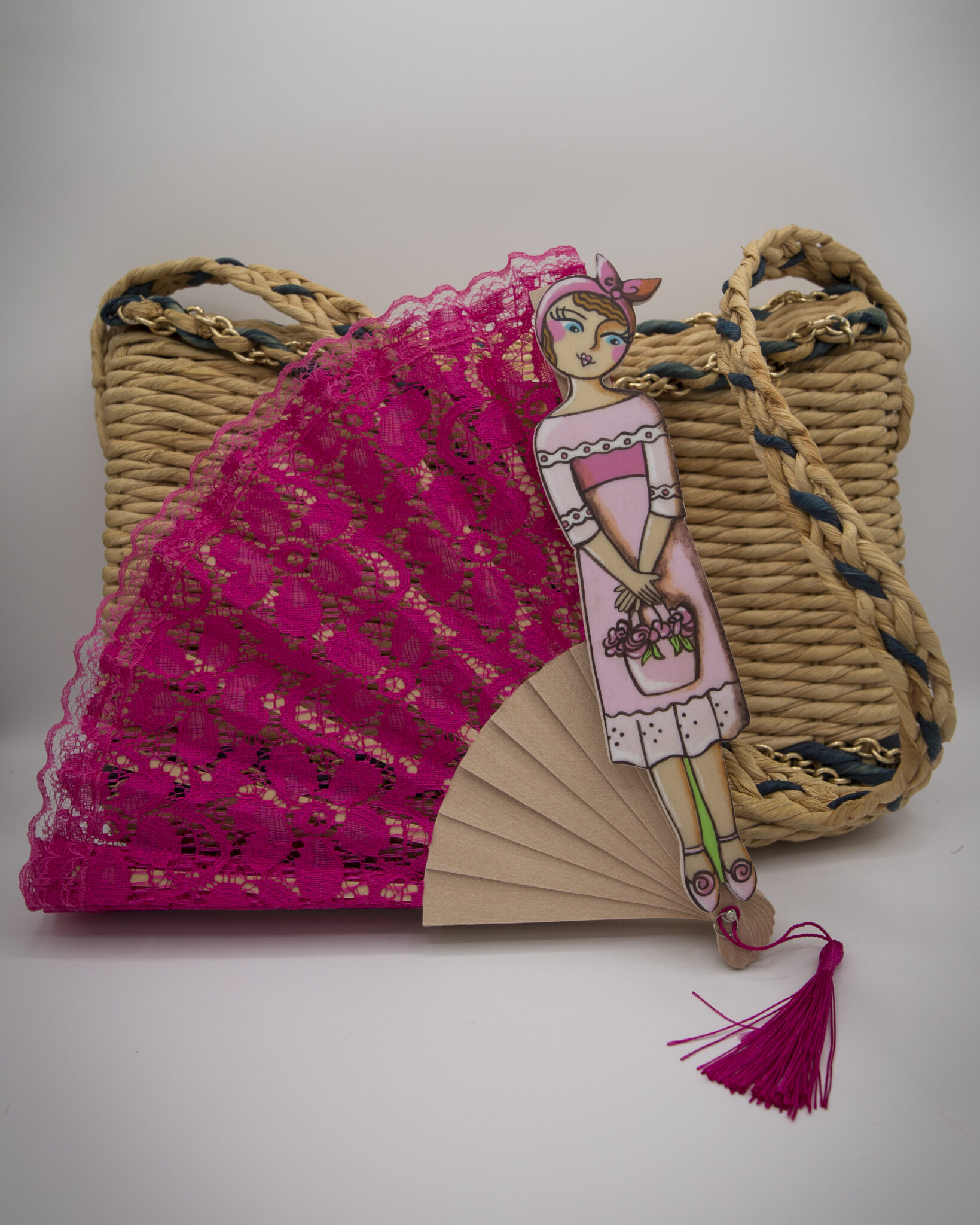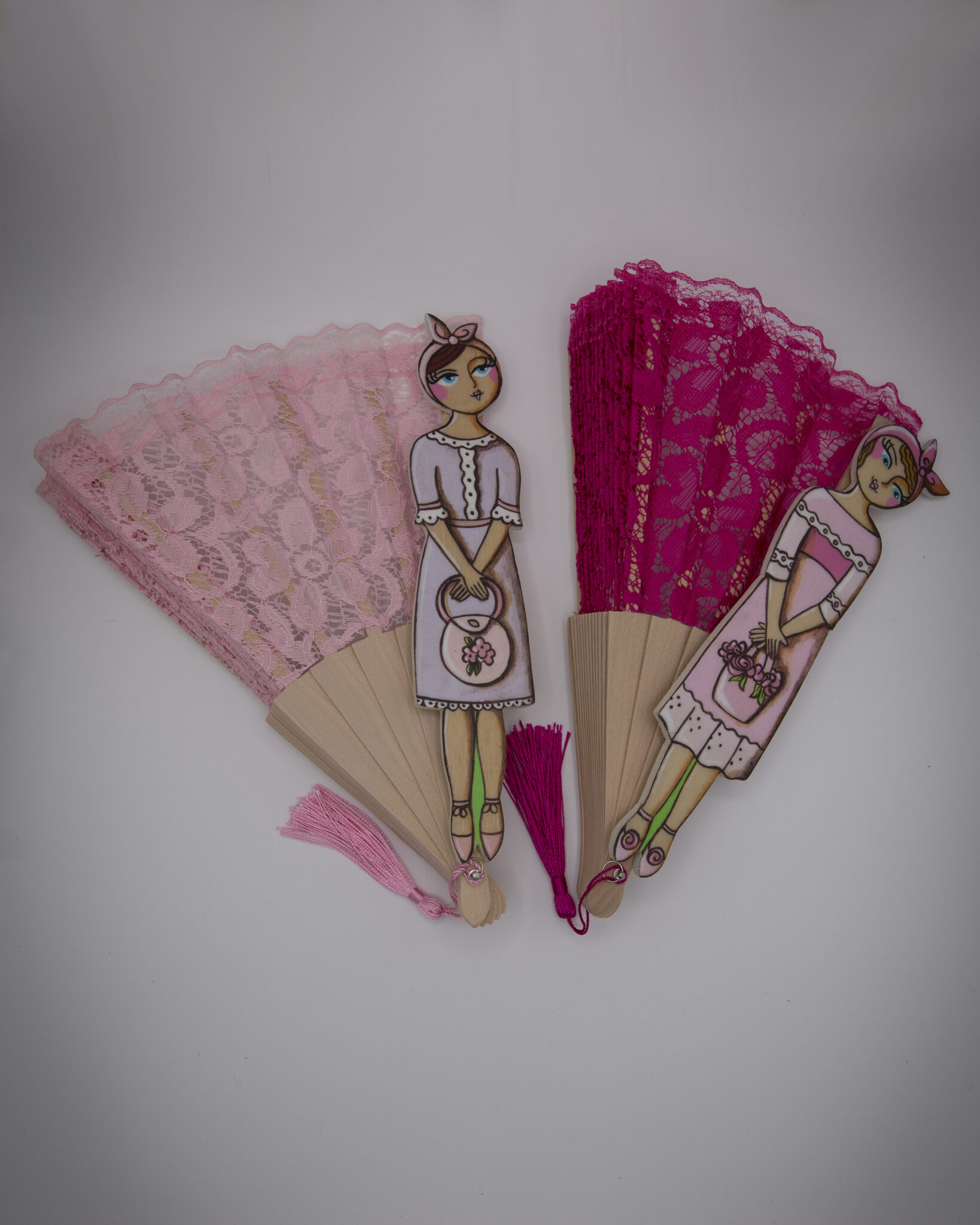 La quinta essenza della donna elegante e romantica. Dal sapore vintage, sono in pizzo ognuno di un colore diverso. La donnina in legno dipinta a mano è unica e irripetibile. Dal look retrò e i grandi occhioni, ognuna porta con sè una borsetta.