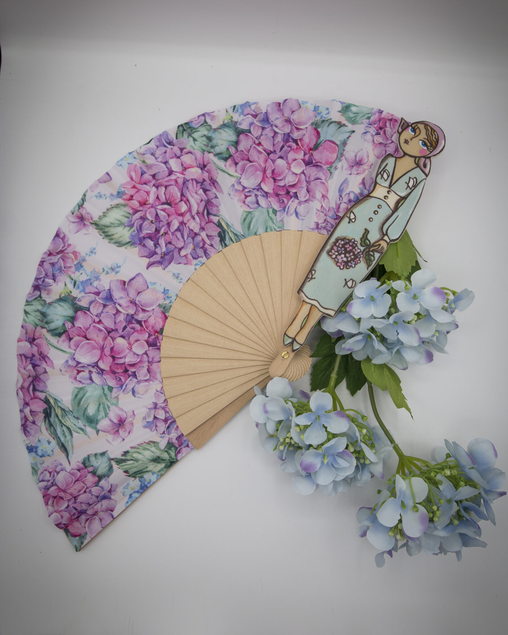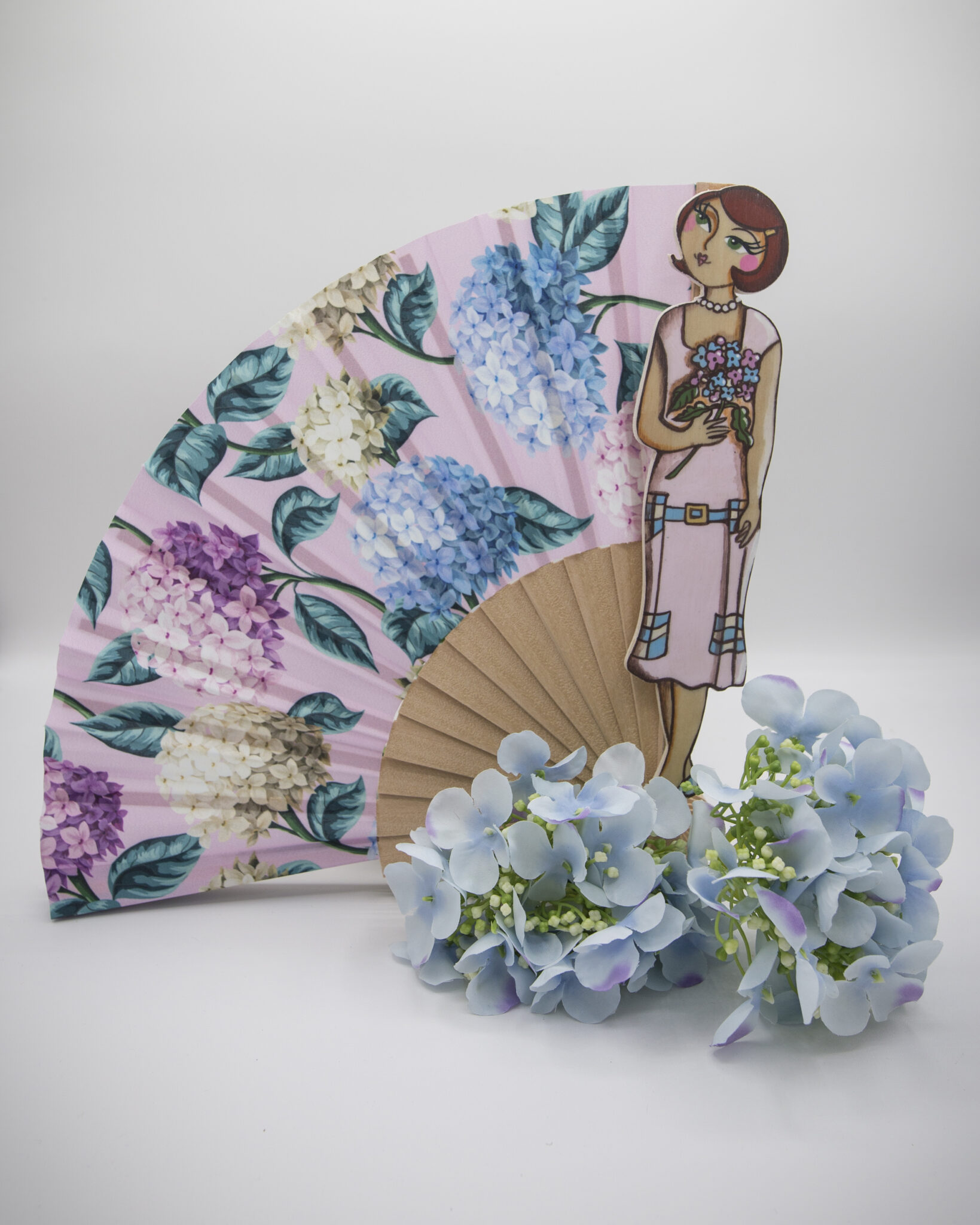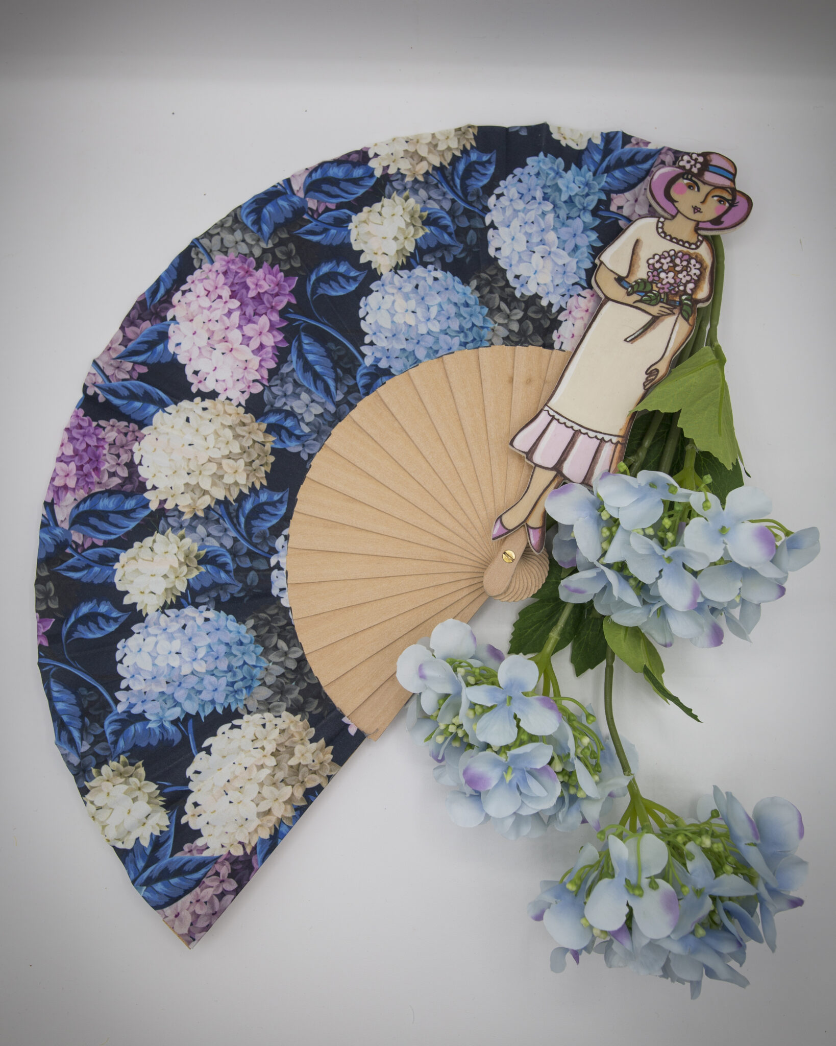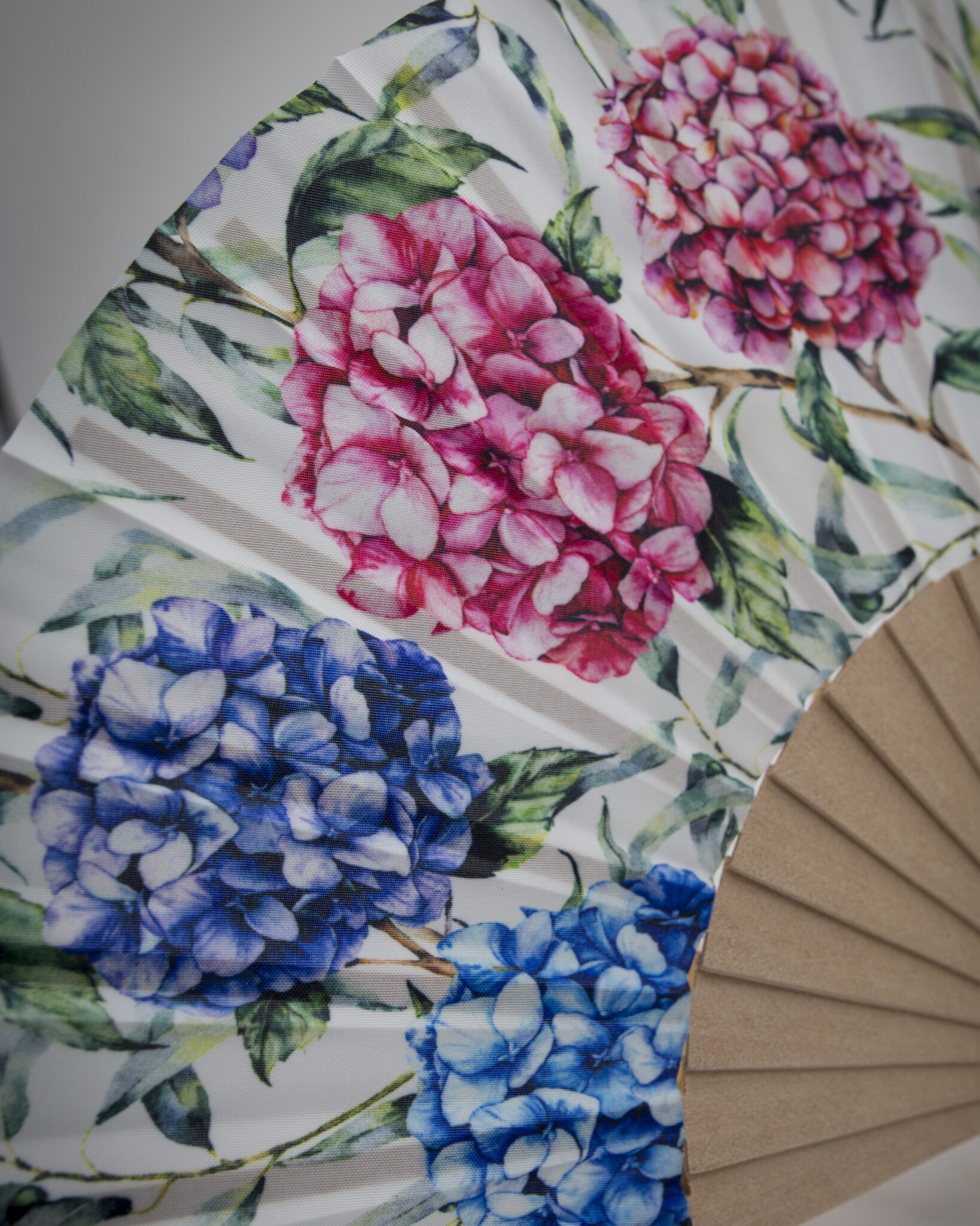 I nostri ventagli sono realizzati a mano con cura e passione, decorati con splendide stampe di ortensie, il fiore che simboleggia opulenza, freschezza e raffinatezza.