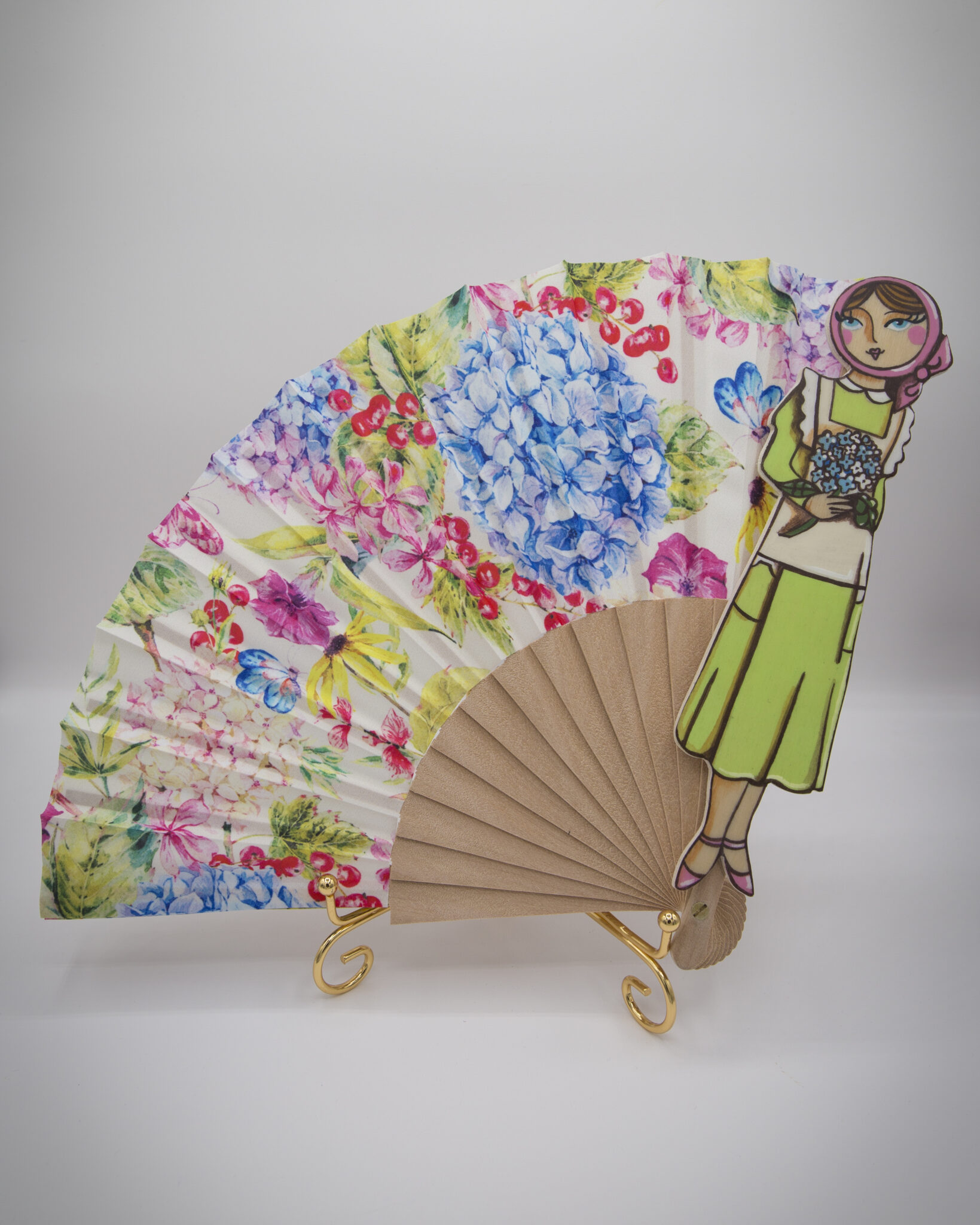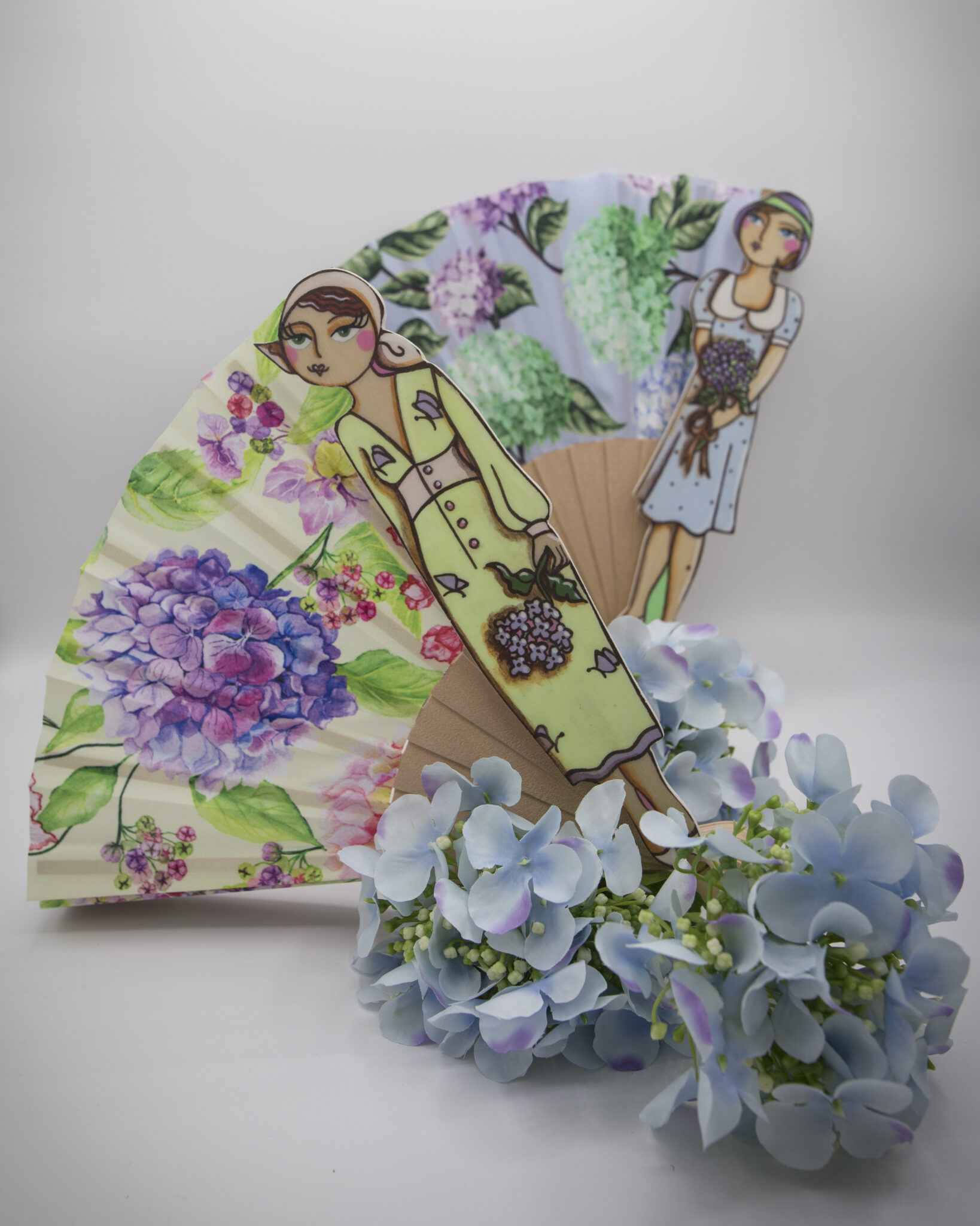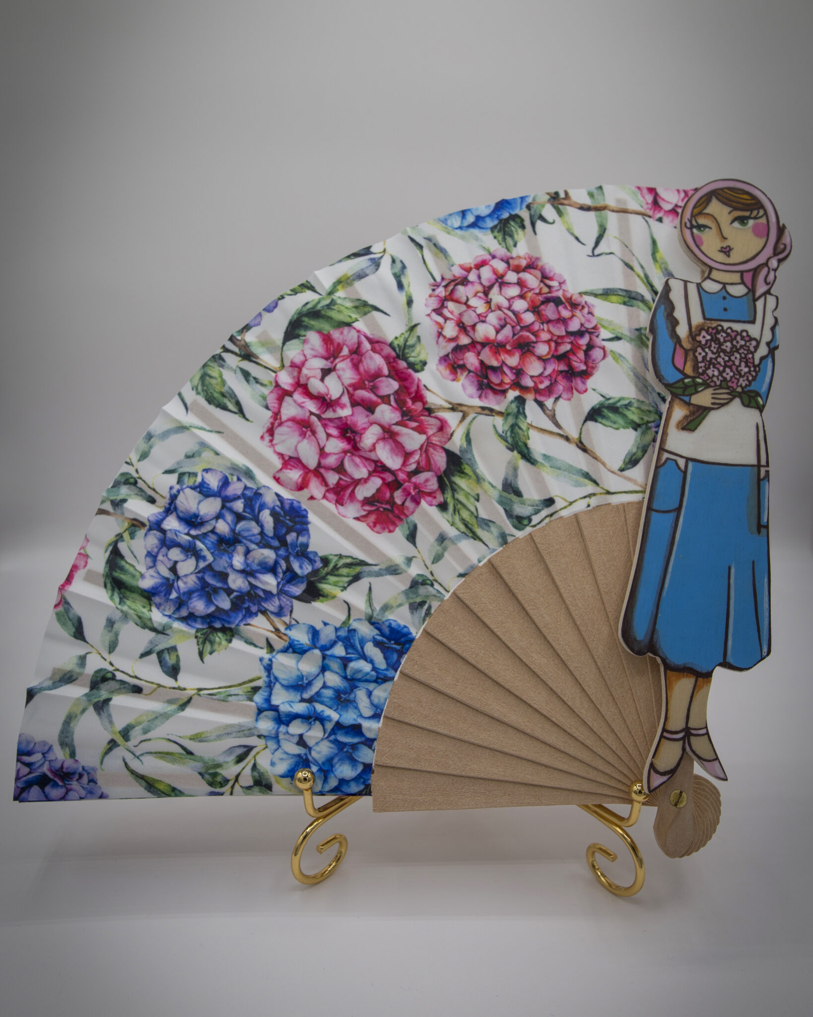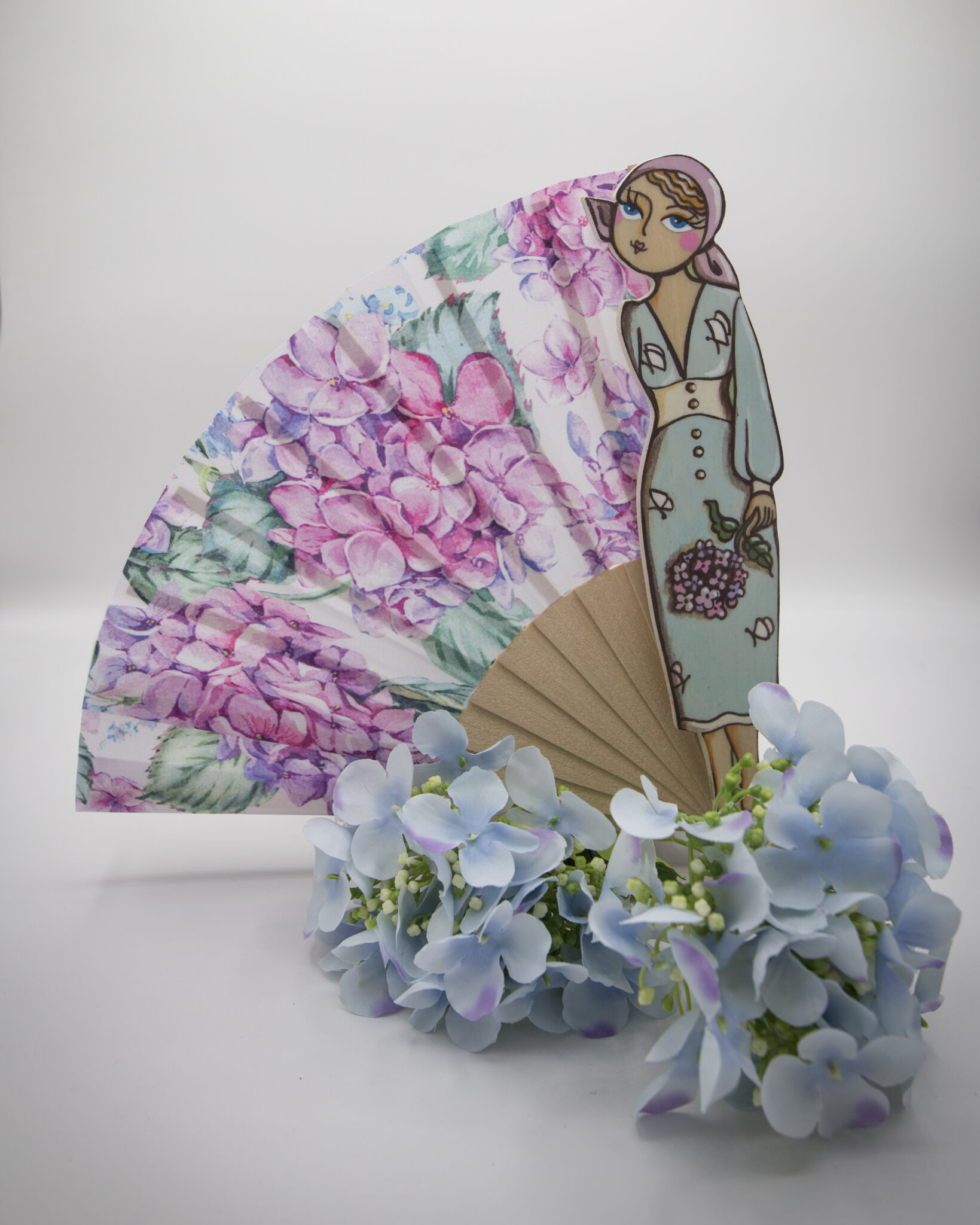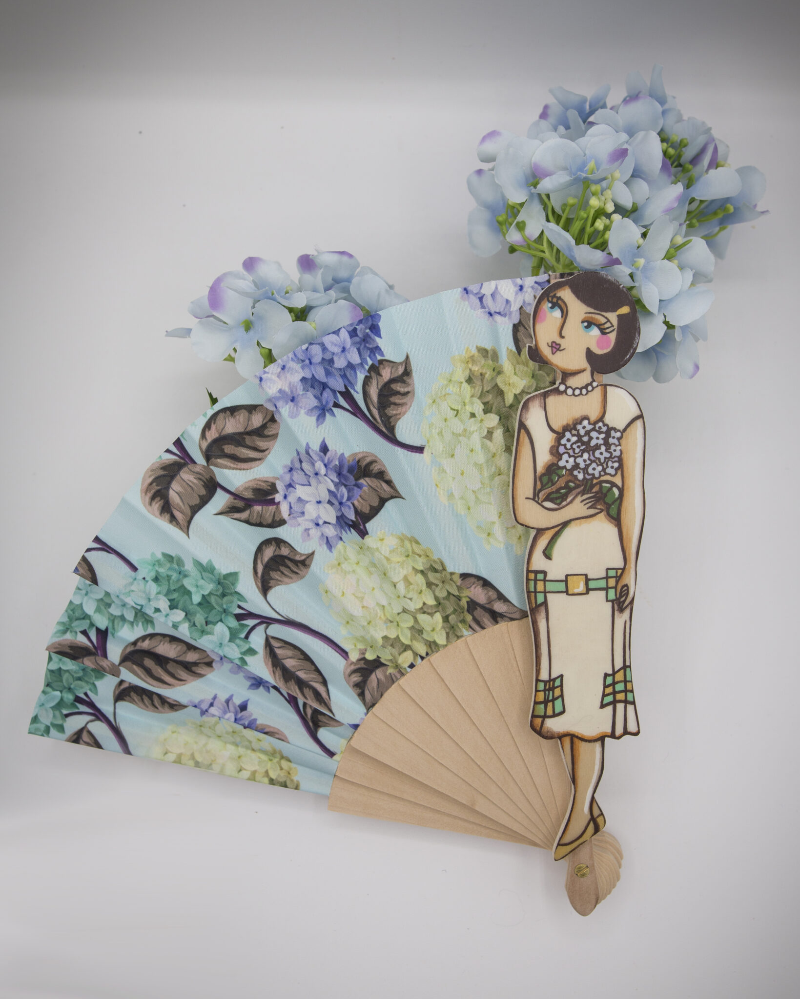 I nostri ventagli sono realizzati a mano con cura e passione, decorati con splendide stampe di ortensie, il fiore che simboleggia opulenza, freschezza e raffinatezza.
