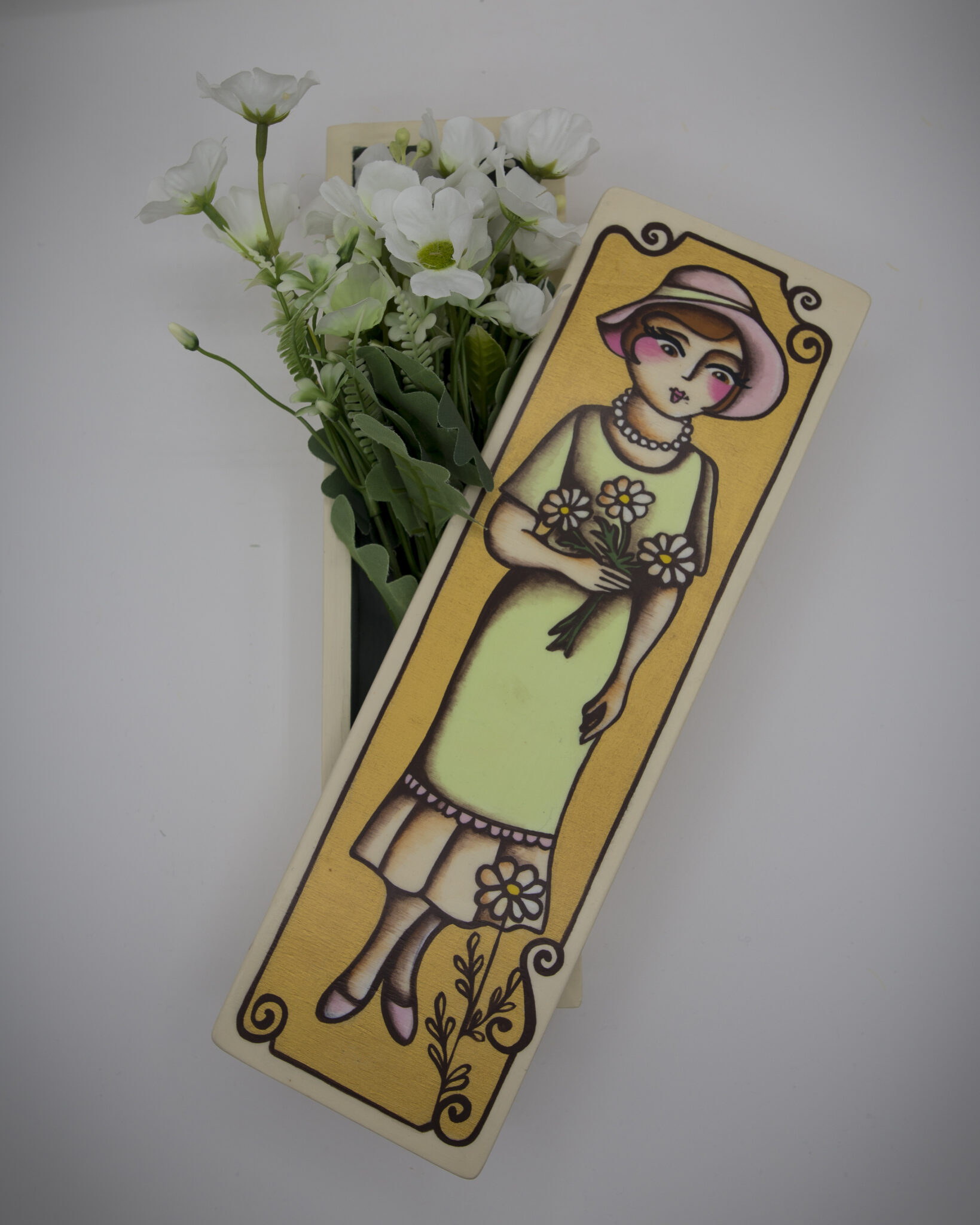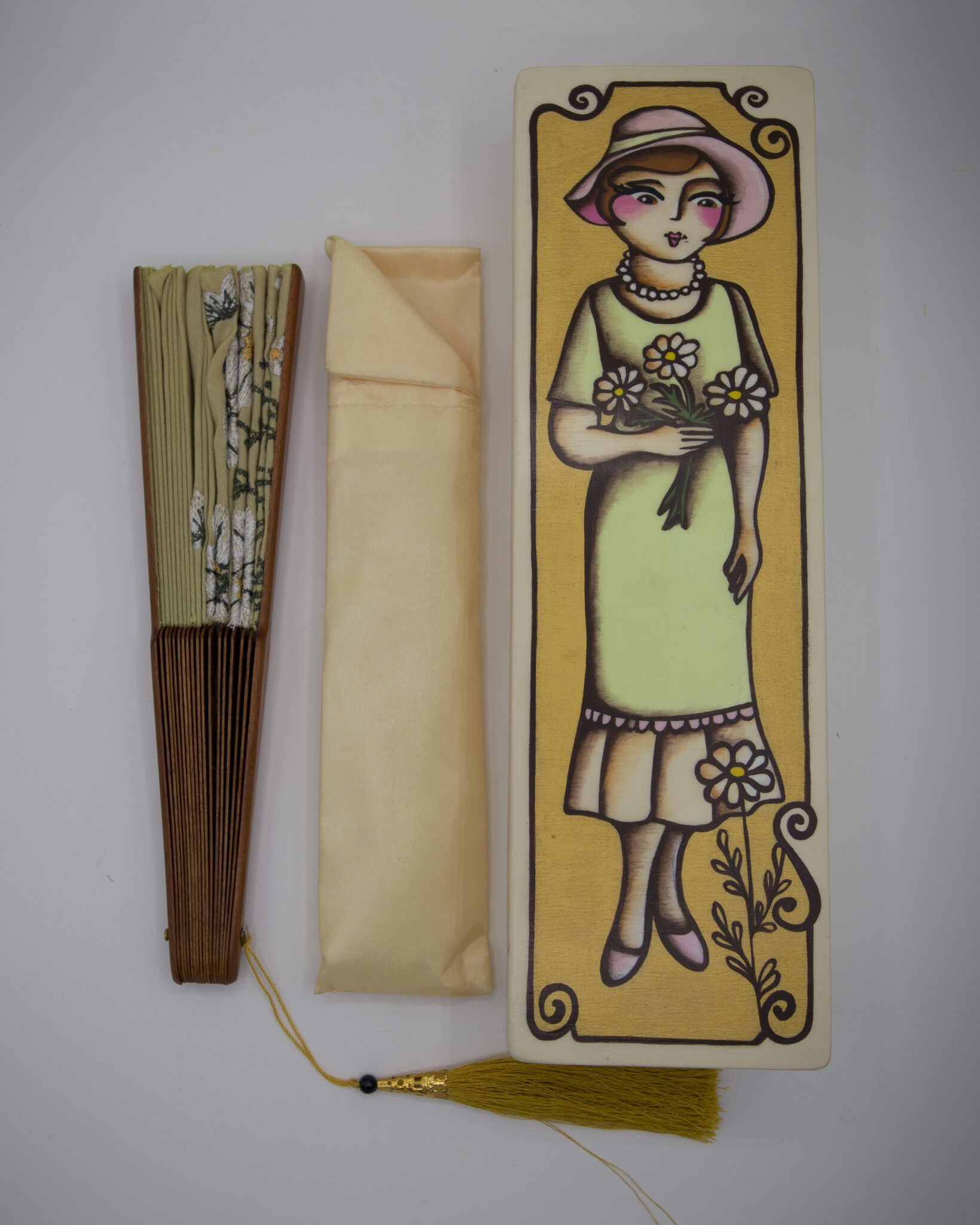 Ma non è tutto: il pezzo è presentato in una scatola in legno dipinta a mano, che rende il tutto ancora più speciale. Sul coperchio, troverete la deliziosa Pupa del Biroccio, dedicata ai fiori, che richiama i ricami presenti sul ventaglio stesso.