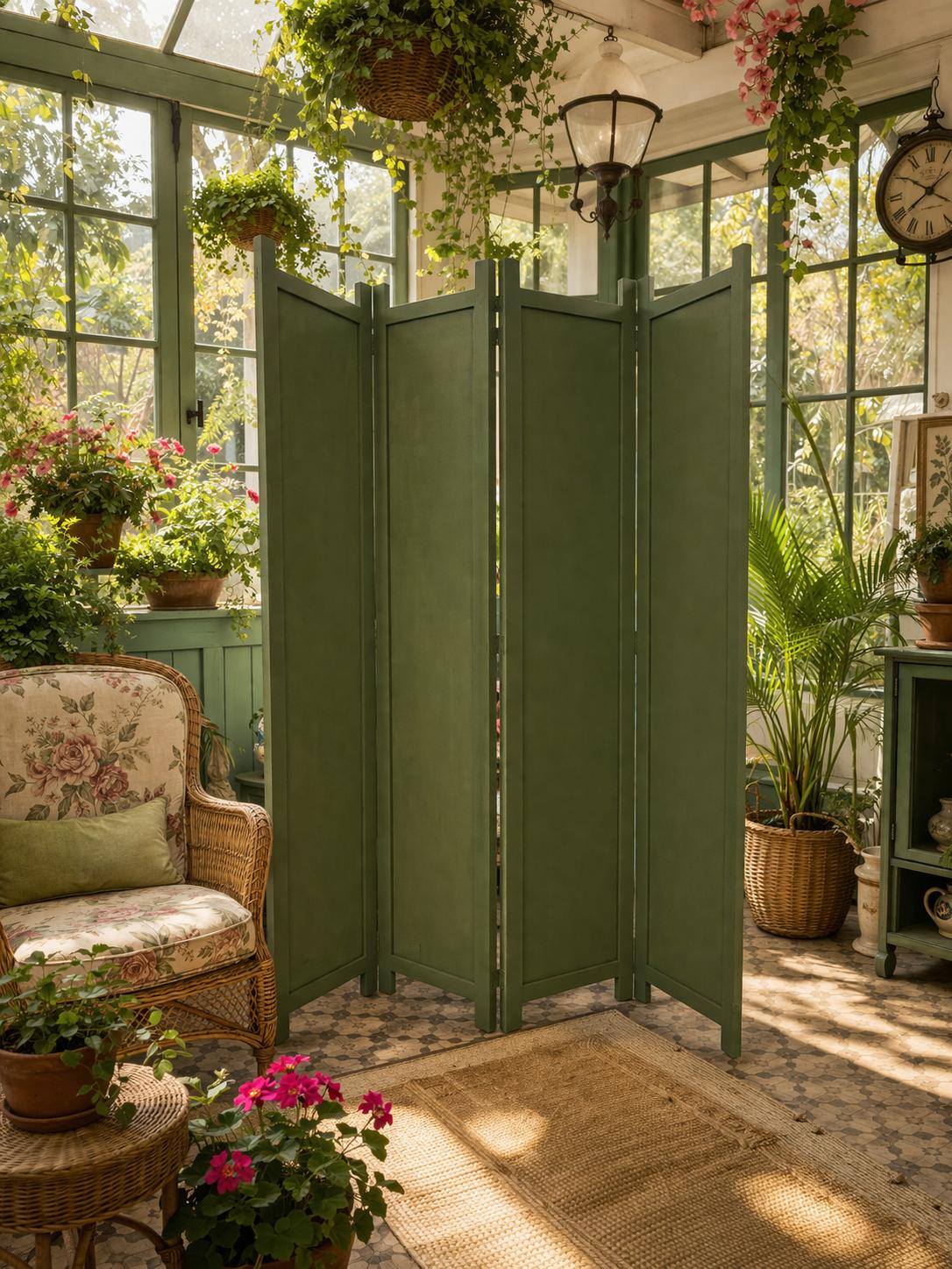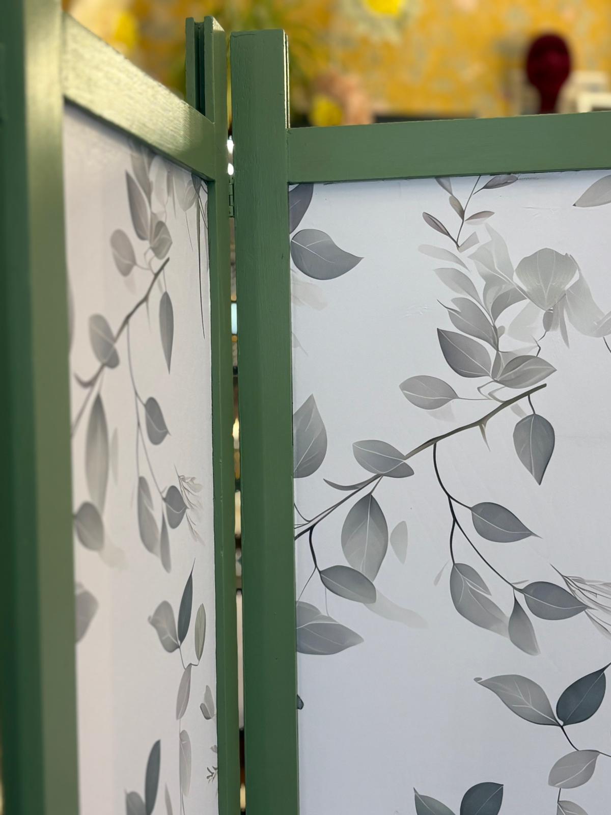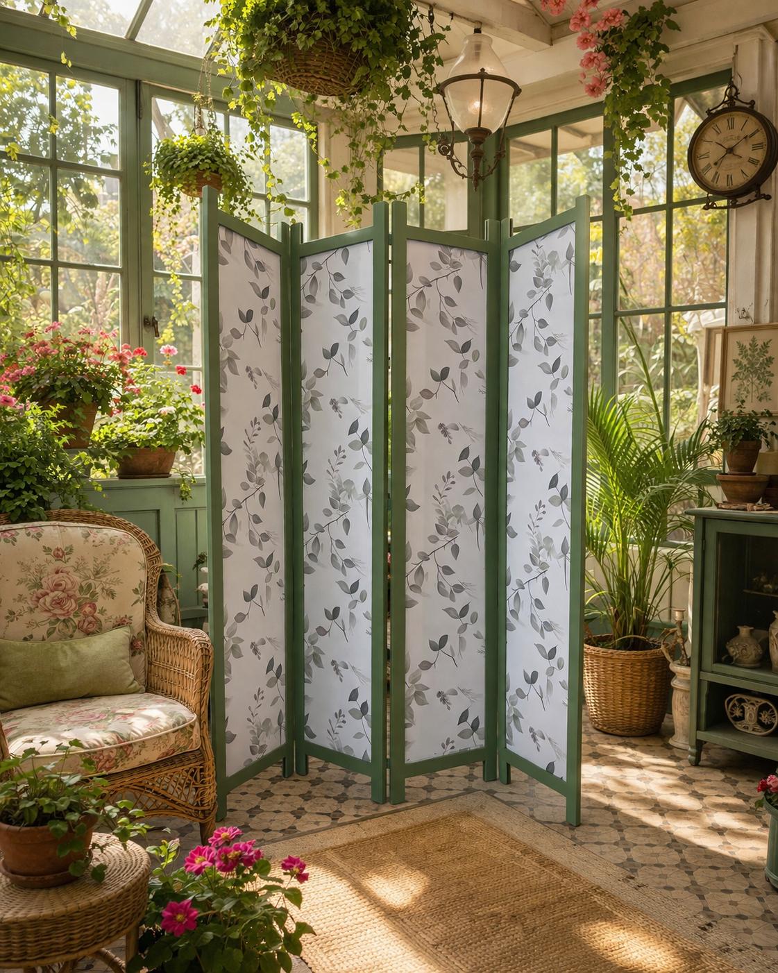 4. Paravento Artigianale “Giardino d’Inverno” – Legno Dipinto e Carta da Parati Botanica