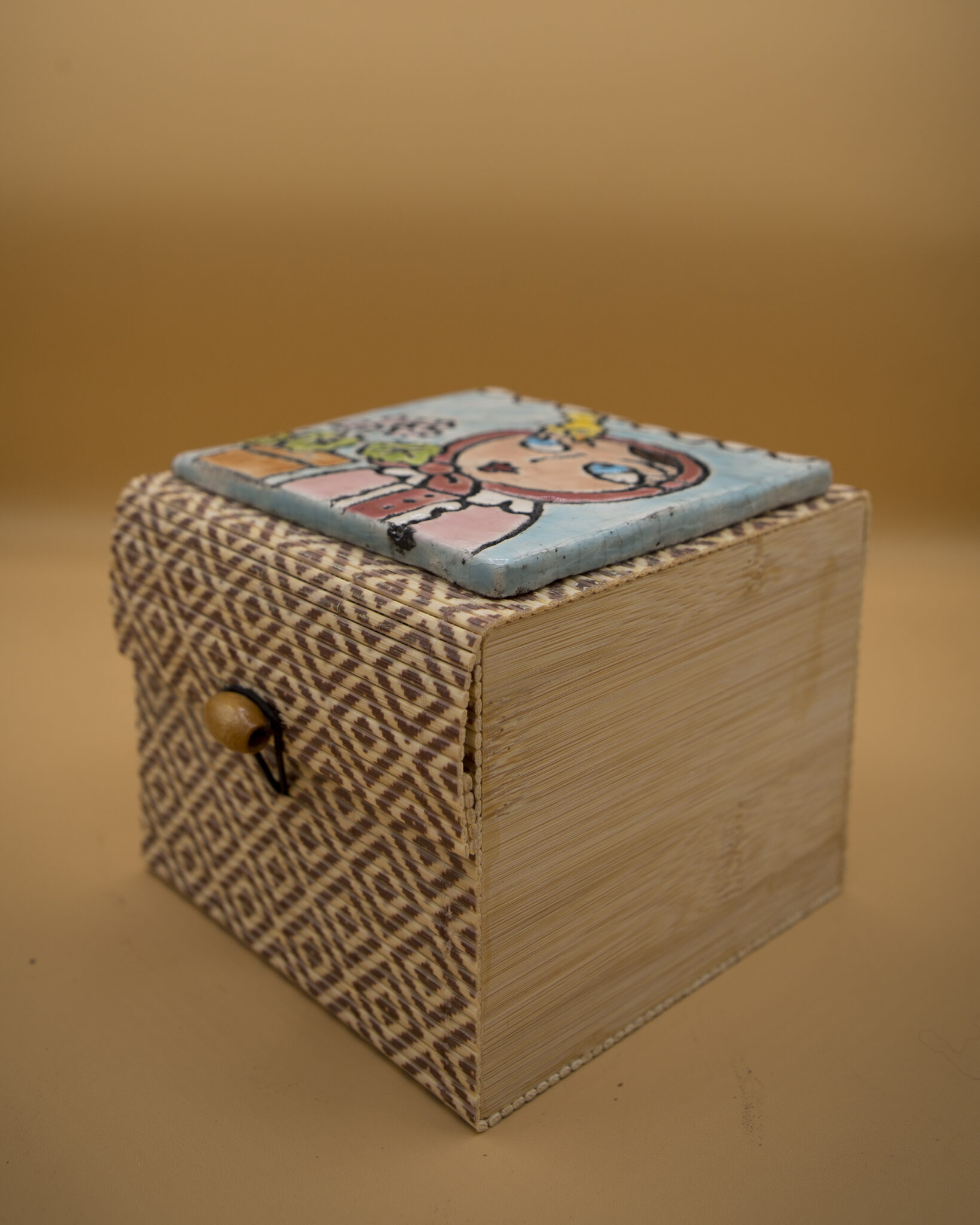 Questa volta la nostra contadinella marchigiana è rappresentata su di una formella in ceramica raku applicata ad una scatola in legno dal sapore orientale.