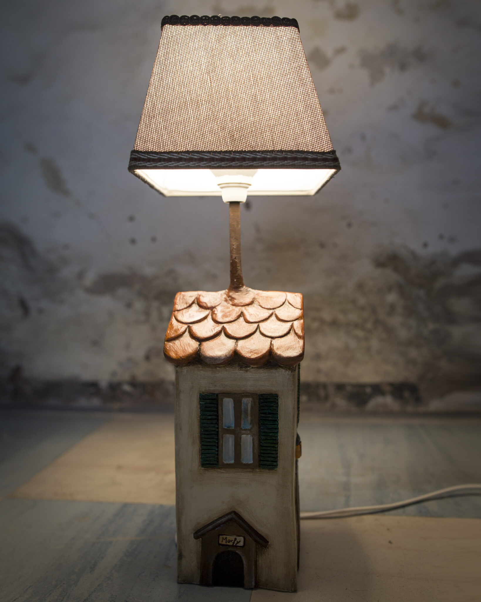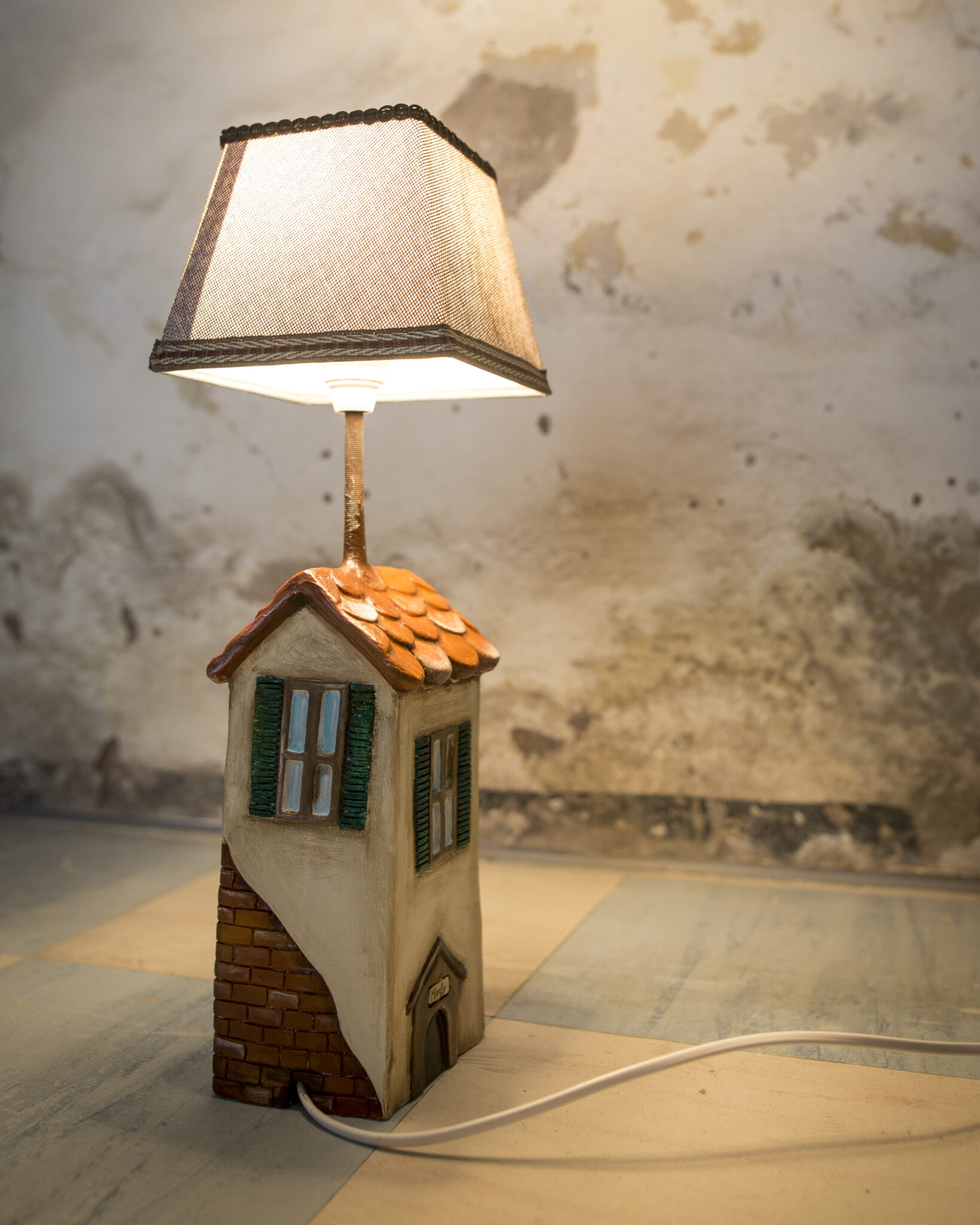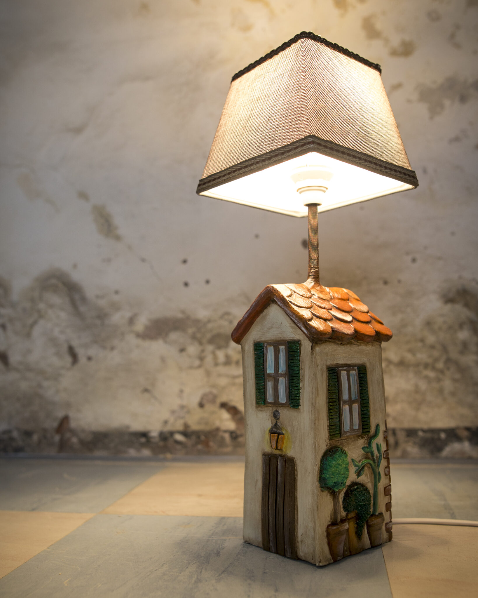 Questa è una delle abatjour che fa parte della collezione di villette e palazzine ispirate alle abitazioni italiane. Finestre con le persiane, panni stesi  ad asciugare al sole e tetto con le tegole in argilla.