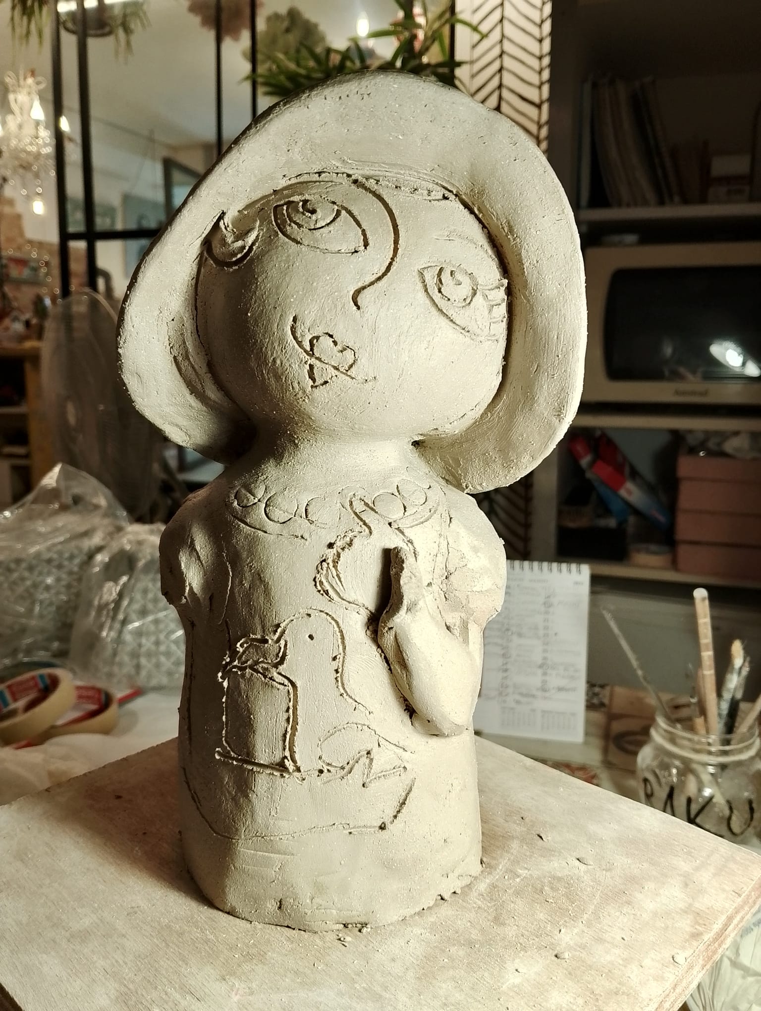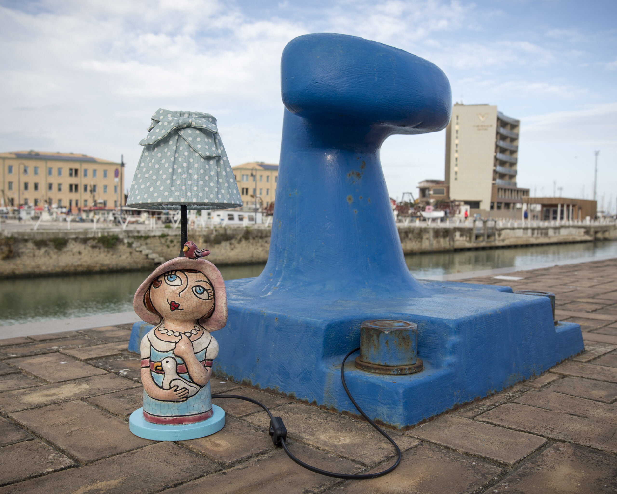 Non più frutti e animali di campagna, ma conchiglie, gabbiani, pesci e piccoli elementi del litorale diventano il linguaggio visivo che popola queste sculture. Le Pupe si trasformano in guardianesce del porto, portatrici delle emozioni che il mare d’inverno regala: quiete, profondità, vento, vastità.