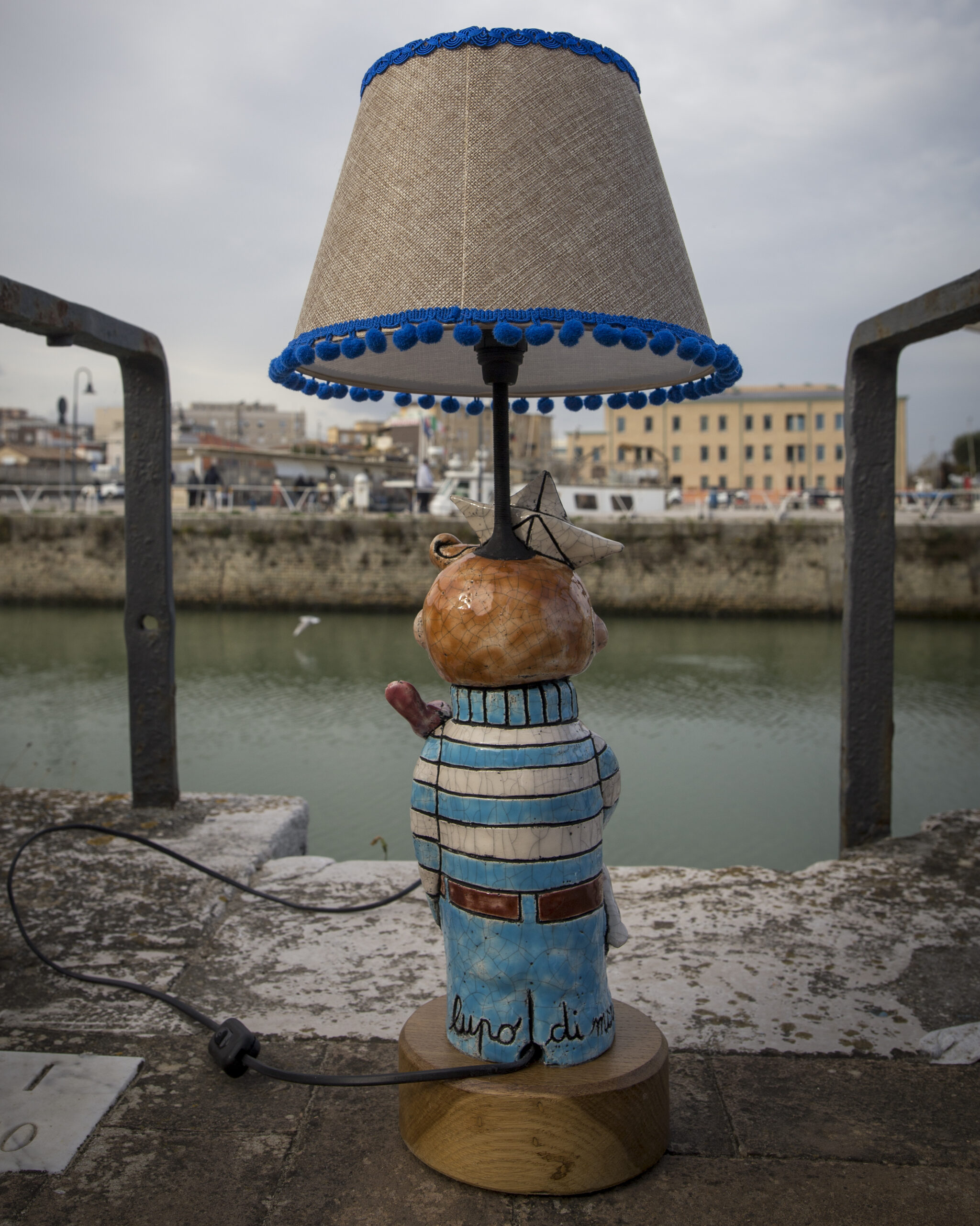 SKU: lampadarakulupodimare Categoria: Lampade Tag: lampada, fatto a mano, senigallia, raku, ceramica raku, ceramica, artigianato, mare, arte, luce, marinaio, lupo di mare