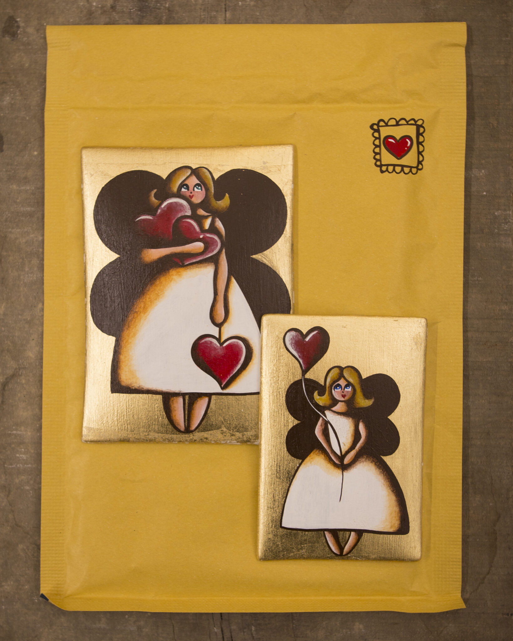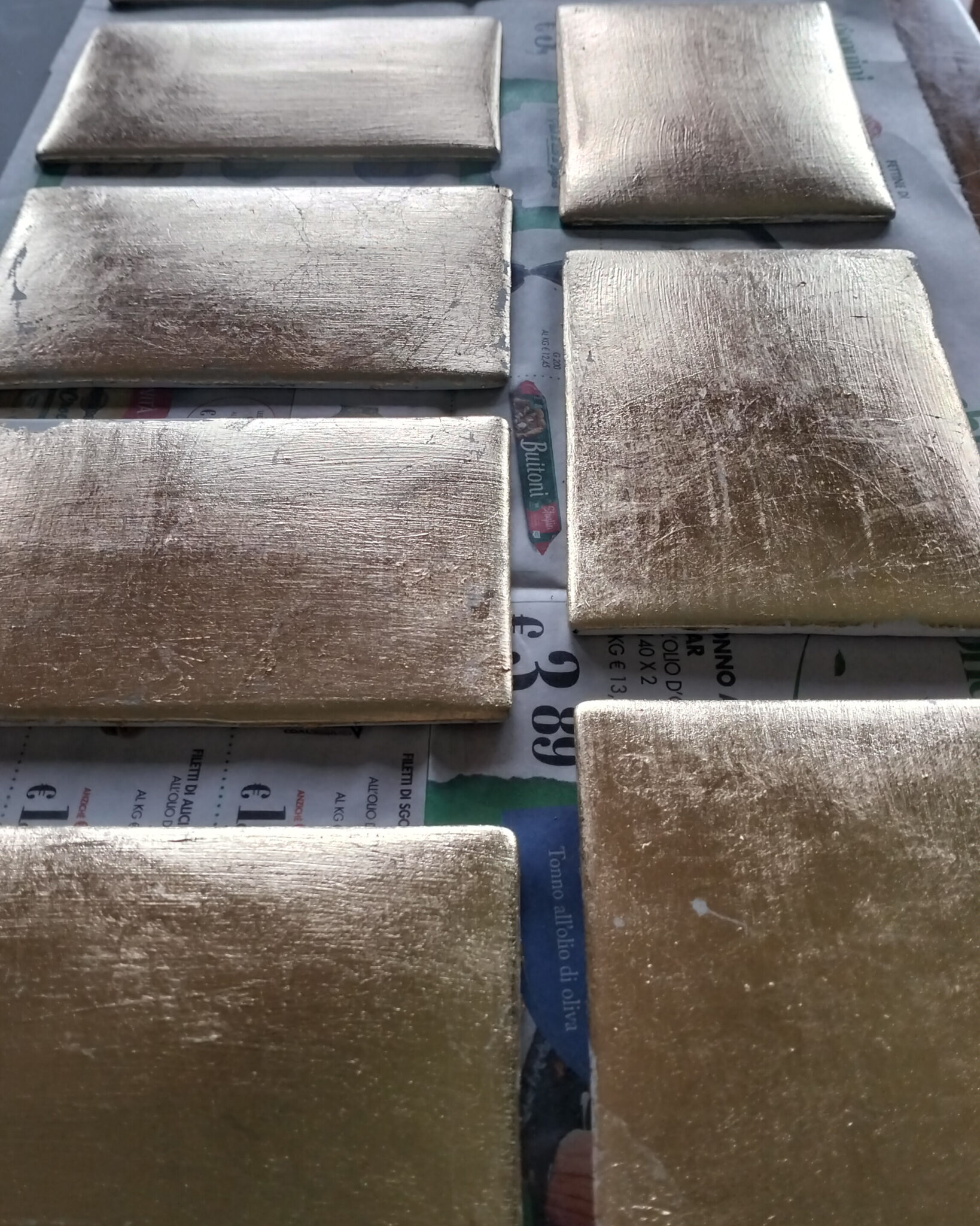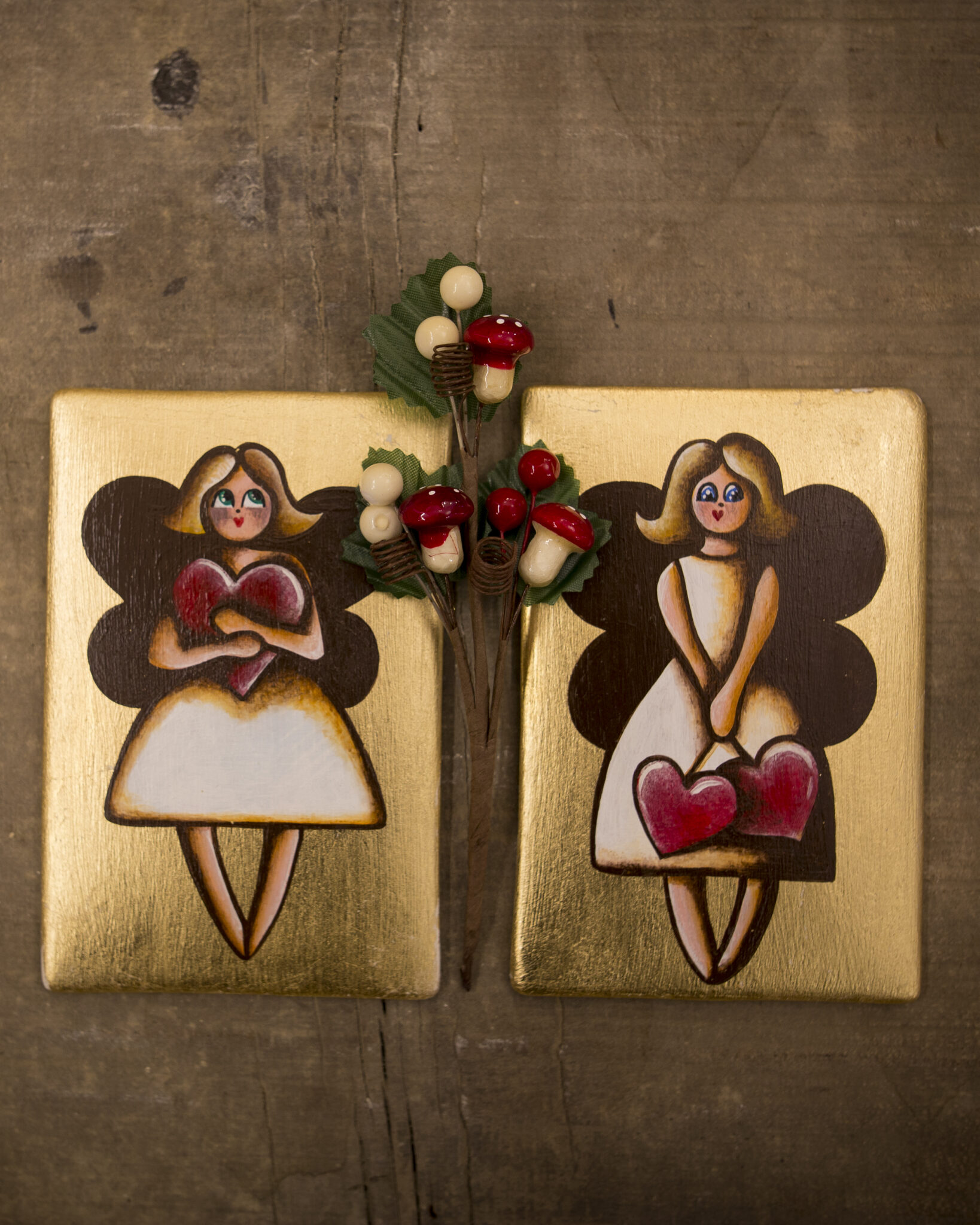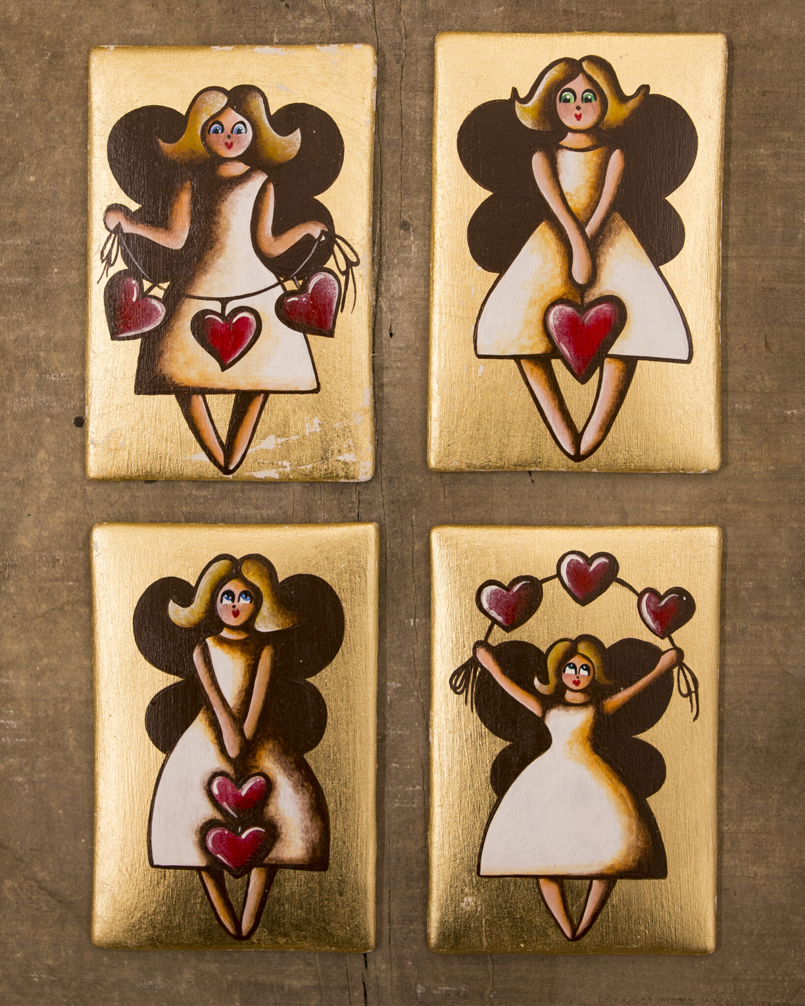 Sfoglie rettangolari impreziosite con una base in foglia oro, sono poi decorate con i classici angeli dalle ali a farfalla.