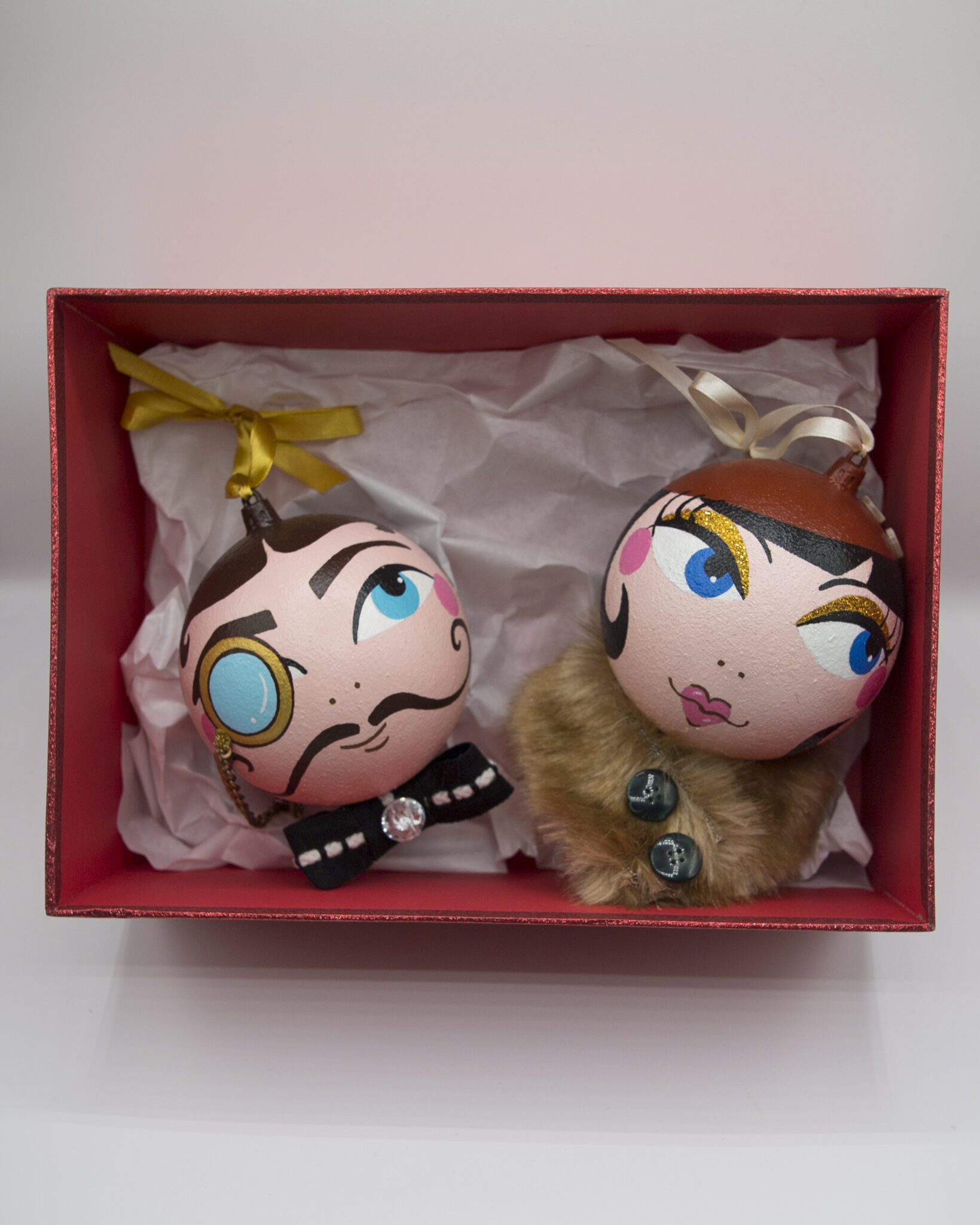 Al suo interno due esclusivi decori da appendere. Le iconiche palle Flapper e Dandy ispirate alla moda degli anni ’20, diventano una coppia.