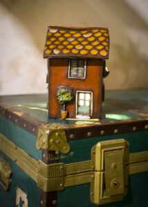 Irradia una soffusa luce calda dalle finestre, una piccola lampada a forma di casa in terracotta con il tetto ricoperto di tegole, le persiane in legno alle finestre, colori sgargianti alle pareti e l’immancabile cane da guardia in giardino. Il suo nome è Toto così come scritto nella sua cuccia.