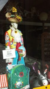 Inutile dire che una delle vetrine più gettonate quell’anno fu proprio la sua. Anche di gente alla mostra ne venne in visita tantissima. Così conclusa l’esperienza per tutti in modo fortemente positivo, Silvana da quella volta puntualmente, chiede ogni anno un nuovo abito per arricchire il suo punto vendita durante la festa più stravagante dell’anno.